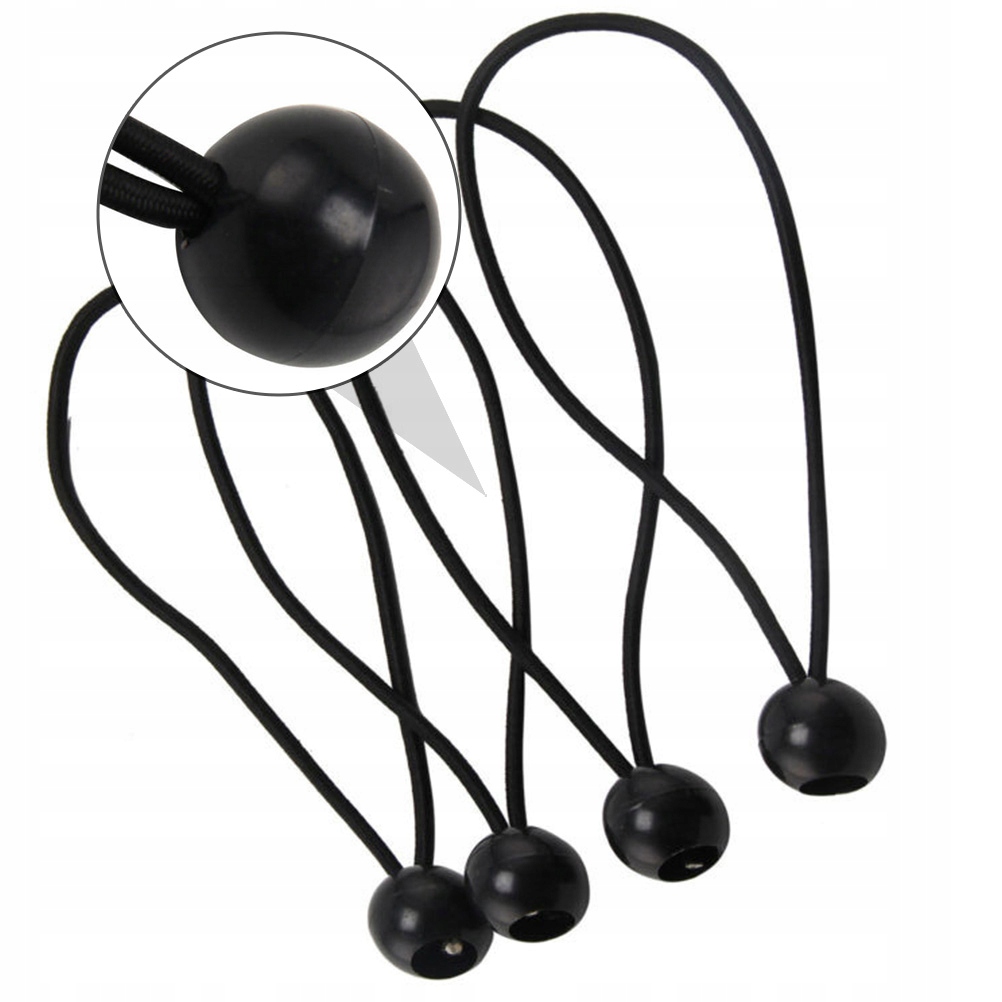 Шнури для банджі-м’яча використовуються для кріплення брезентів до навісів або інших фіксованих точок. Невеликий рух може допомогти продовжити термін служби брезенту та прокладок. Просто протягніть його через втулку та опору, а потім закріпіть на м’ячі. Залежно від конструкції, кінець петлі можна було прикріпити до предмета чи іншої банджі, кінець кульки можна було вставити в гачок чи іншу застібку, або все це можна було використовувати як маленьку петлю з однієї нитки. Вони подовжують термін служби брезентів і прокладок, не допускаючи руху, витримують будь-які погодні умови та придатні для багаторазового використання.
