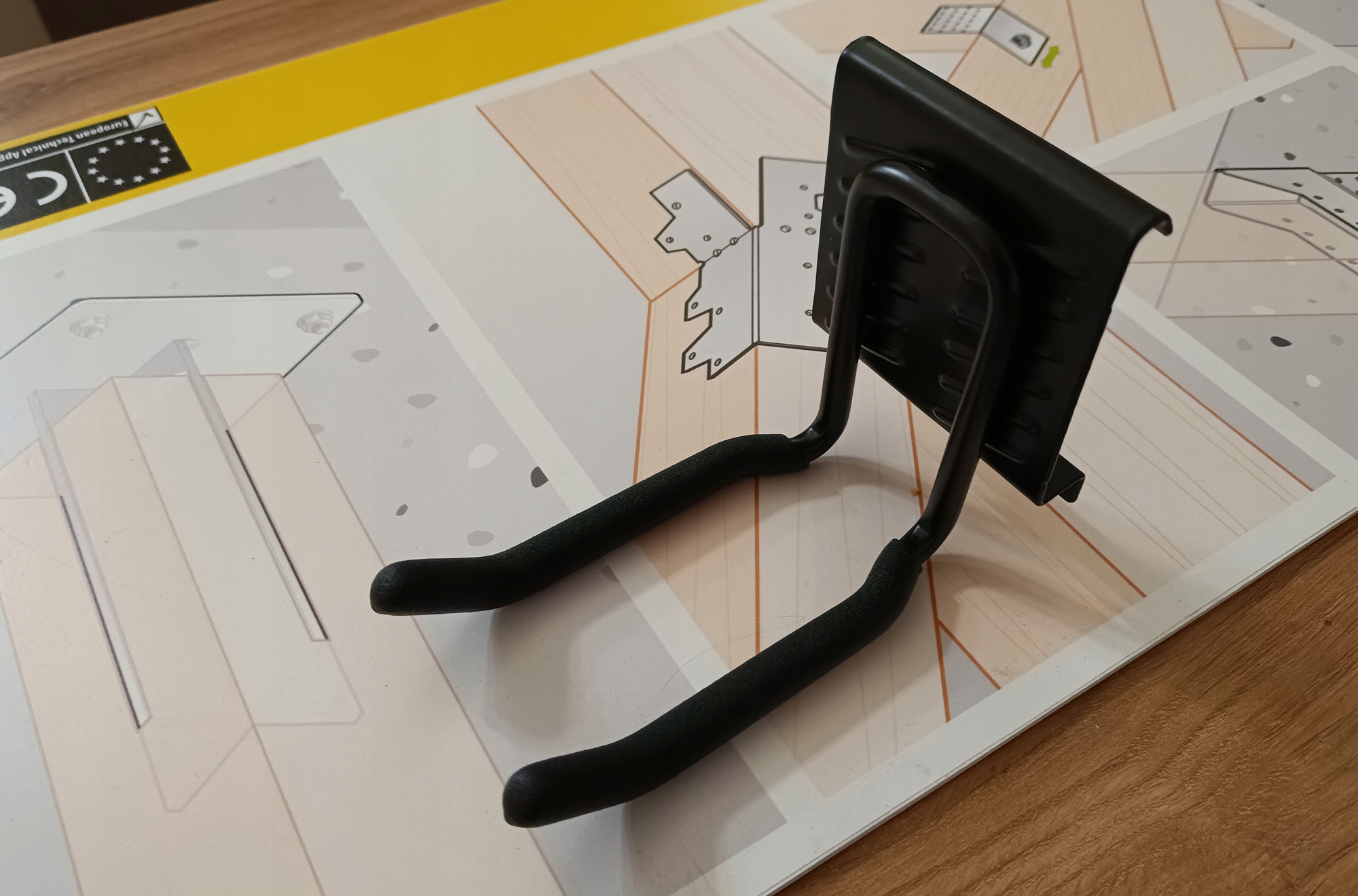 Завдяки Golijat гачки, лопати, садові шланги, кабелі та електроінструменти знайдуть місце в кожному гаражі, майстерні чи підвалі. Гаки зроблені зі сталі, а елементи, які безпосередньо контактують з підвішеними предметами, покриті гумовим покриттям, яке захищає від подряпин.