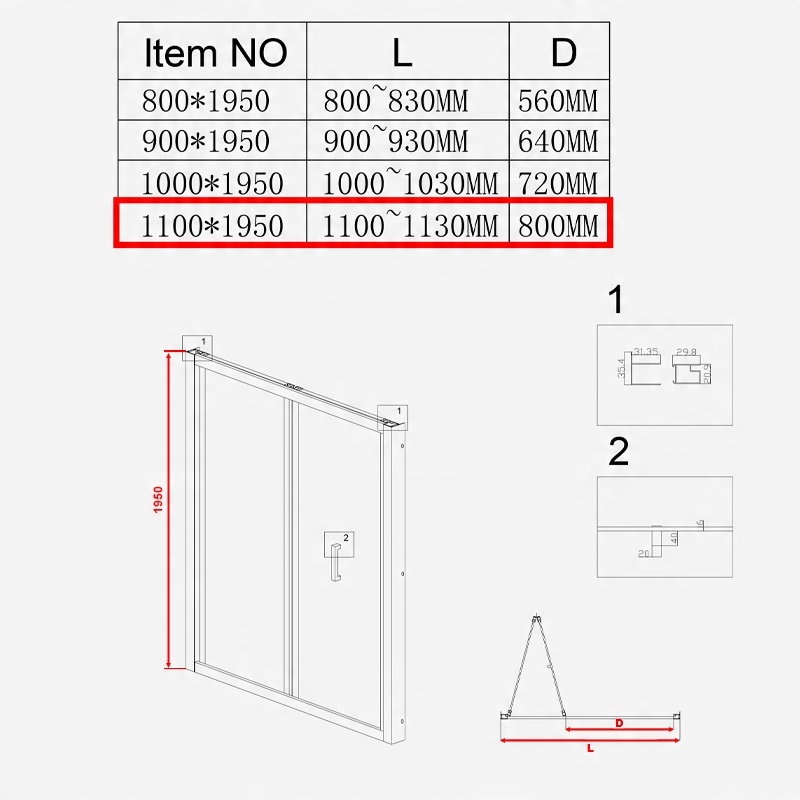 SH09D ДУШОВІ ДВЕРІ ХРОМ 110 СМ 6 ММ