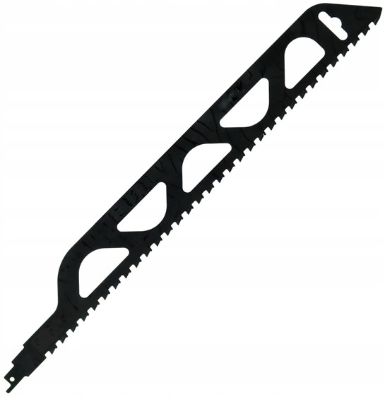 - Полотно для шабельної пилки, зубці з спеченого твердого сплаву, призначене для різання деревини, бетонних блоків, цегли тощо.