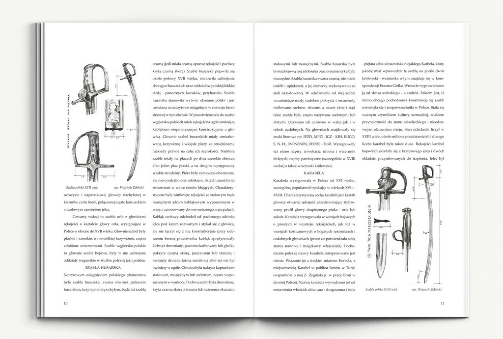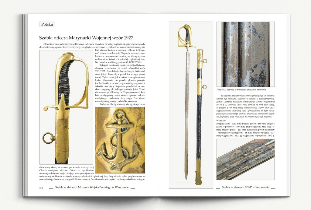 Книга поділена на кілька розділів, зокрема: на тему останньої польської бойової шаблі – кавалерійської шаблі зразка 1934 року, а також спеціальний розділ, створений завдяки люб’язності директора Музею Війська Польського у Варшаві, в якому на 120 сторінках представлено зброю були представлені найвидатніші постаті періоду Другої Польської Республіки - маршал Юзеф Пілсудський, маршал Едвард Ридз-Смігли, генерал Владислав Сікорський, генерал Миколай Болтуч, генерал Станіслав Сосабовський, генерал Люціан Желіговський, генерал Юзеф Халлер та інші.