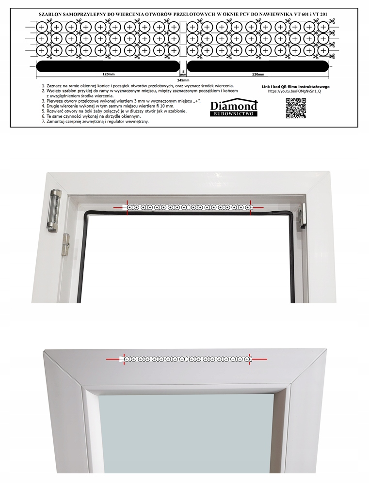 Самоклейний шаблон для свердління наскрізних отворів для вентиляційних отворів у вікнах ПВХ.