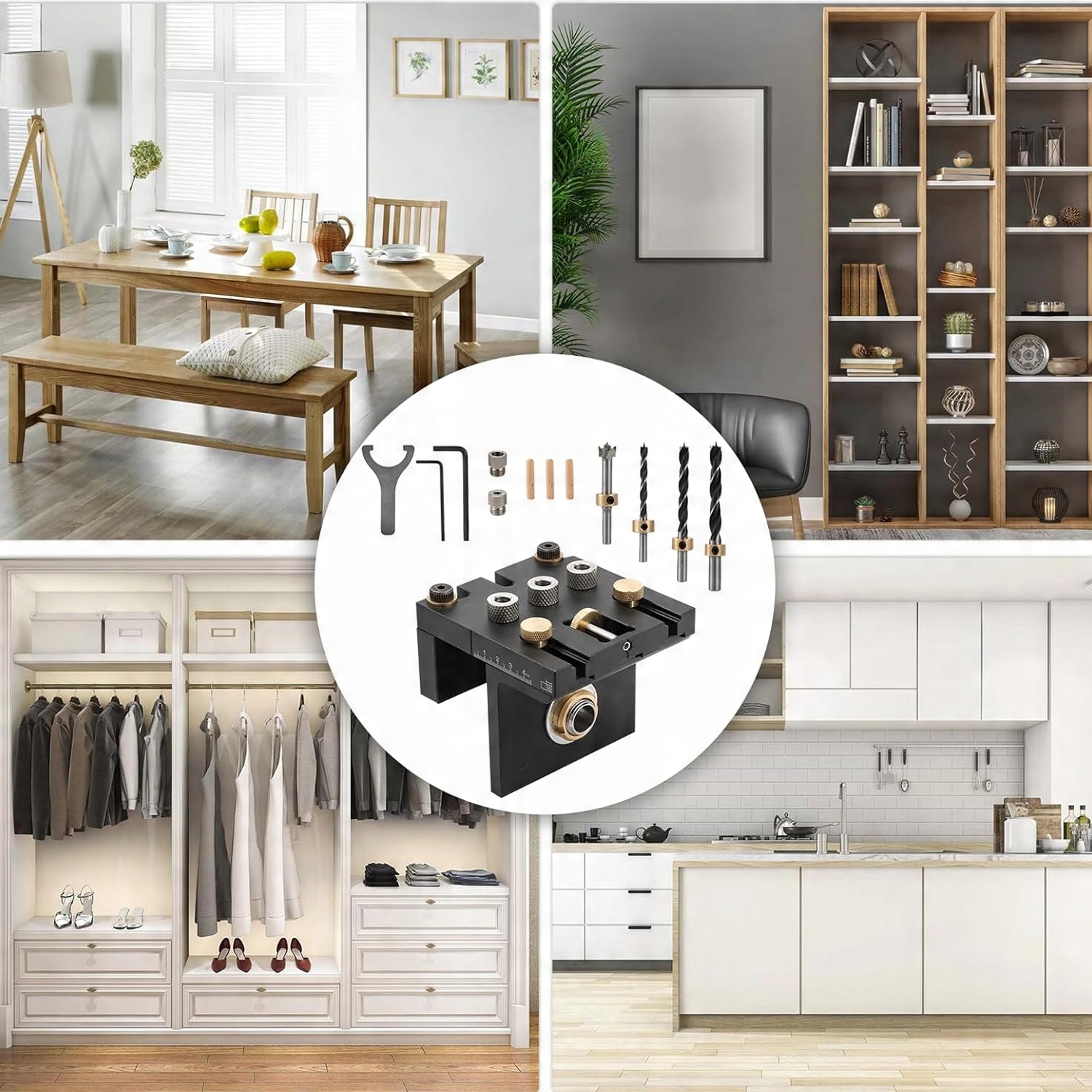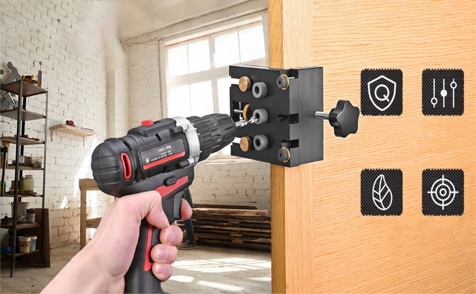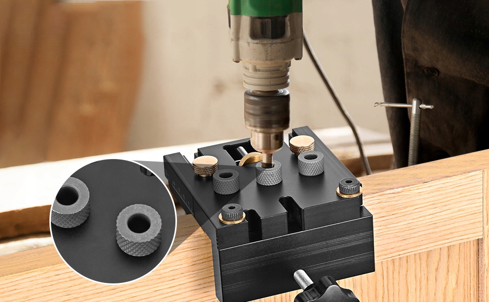 - Набір джигів 3 в 1 для свердління потайних і вертикальних отворів.
