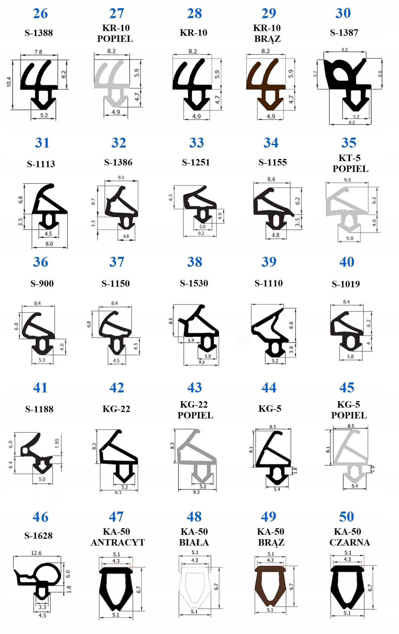 . Це дозволяє швидко та без помилок замінити ущільнювачі у ваших вікнах.Нижче всі ущільнювачі відбитків для вікон ПВХ з нашого пробовідбірника з описом використання.
