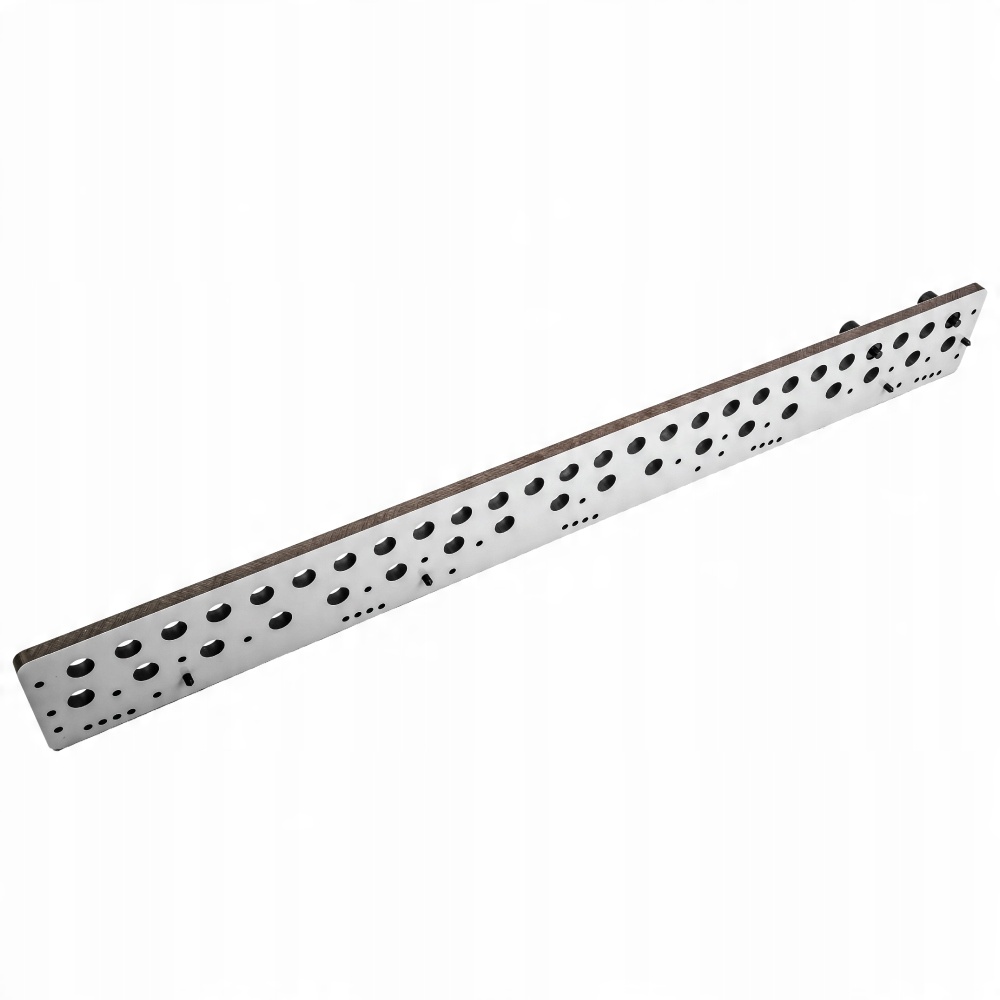 Для свердління кронштейнів полиць в основному використовуються отвори з відстанню 32 мм. За допомогою упорів шаблон можна точно розташувати в кутку і розмістити від краю на вибраній відстані. Отвори для кронштейнів повинні мати діаметр 3 мм або 5 мм, залежно від використовуваного типу. Великою перевагою є можливість просвердлити більше отворів в одному ряду під час монтажу пристрою. Шаблон є не тільки ідеальним помічником при складанні, але і при виготовленні елементів меблів.