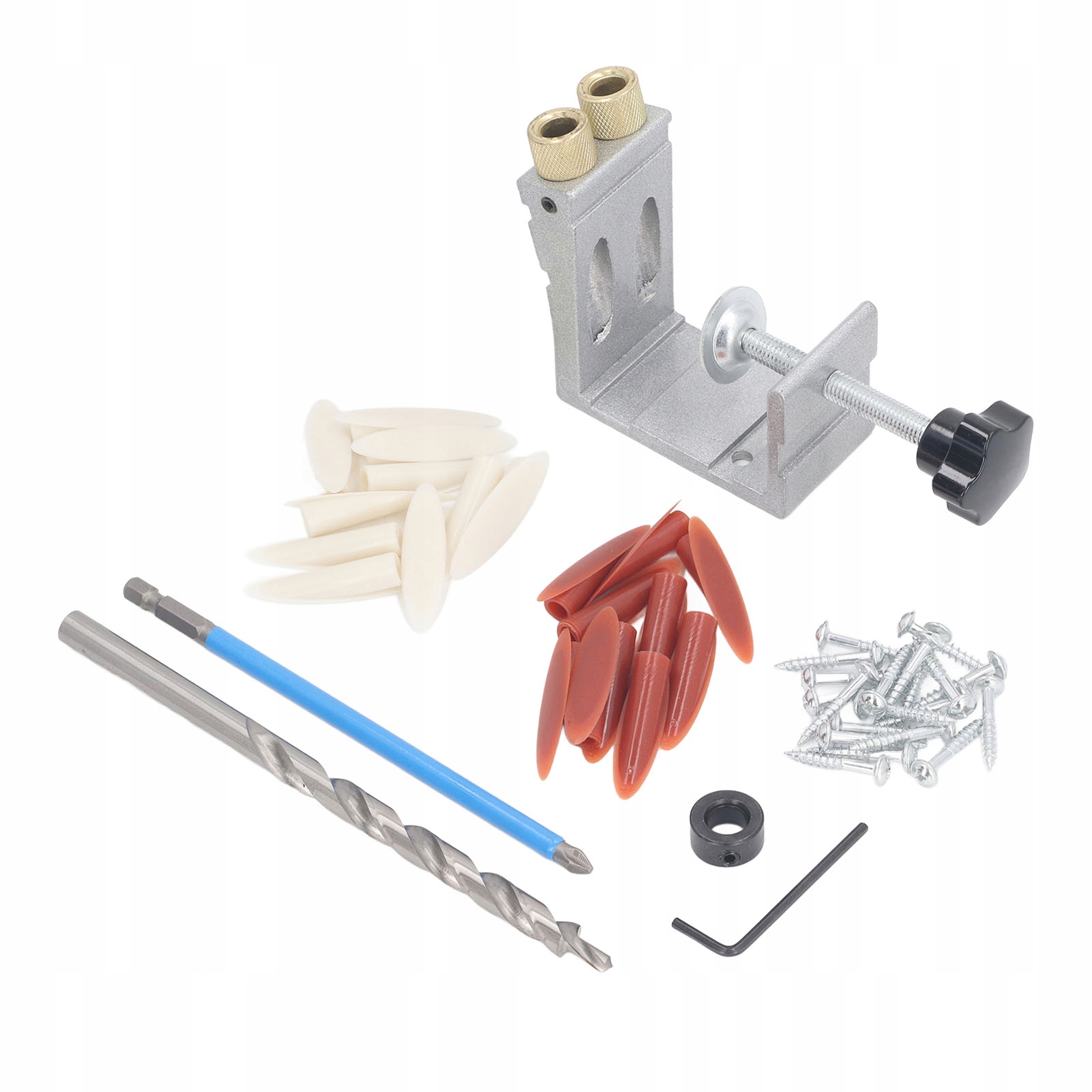 1. Встановити для виготовлення кишенькових отворів: Цей набір для створення кишенькових отворів дозволяє створювати плоскі, кутові та кутові роз'єми з кишеньковими отворами для ніг та з'єднань залізниць, шафами для каркасів, осадженням гвинтів у вузькому просторі, захист фотографій та інше.