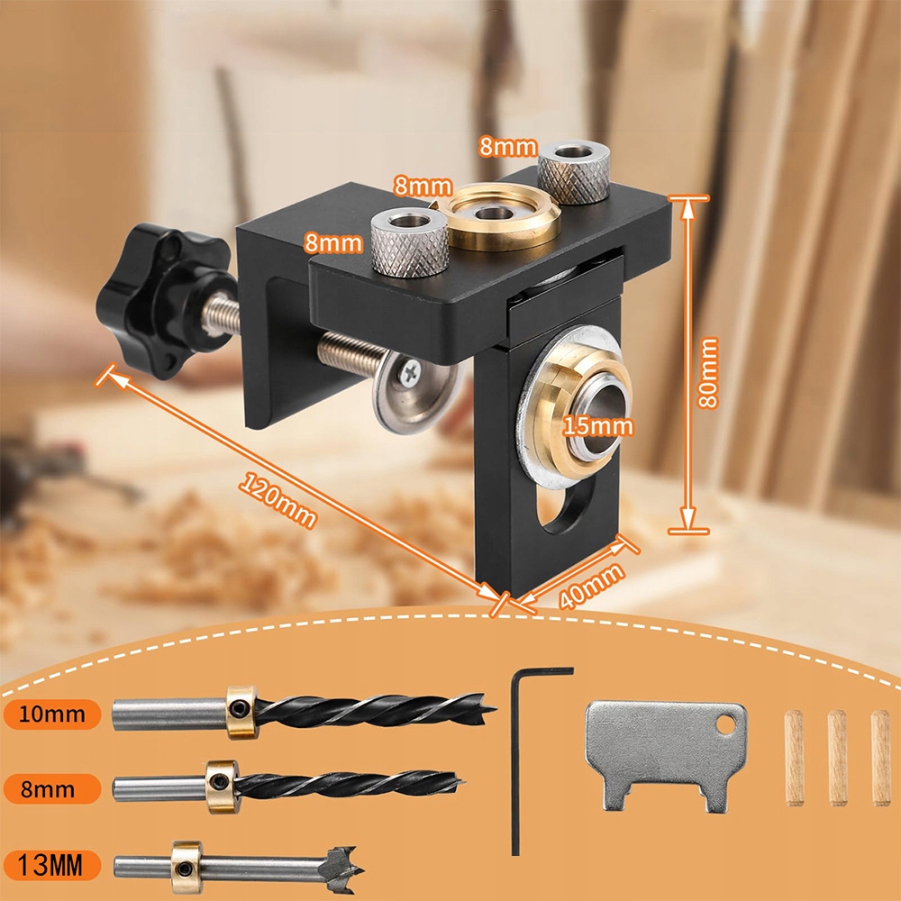 - За допомогою дрилі ви можете комфортно та легко просвердлити вертикальні отвори для гвинтів у дерев'яних меблях, точні отвори для деревообробки, ідеально підходячи для меблевих з'єднувачів та деревообробних інструментів.