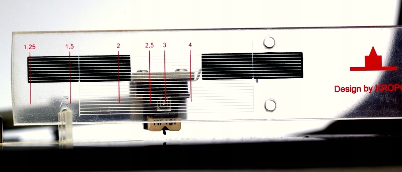 Калібрування передбачає встановлення кронштейна паралельно програвачу. Якщо програвач не має регулювального гвинта, ви можете вставити адаптери висоти між картриджем і головкою.