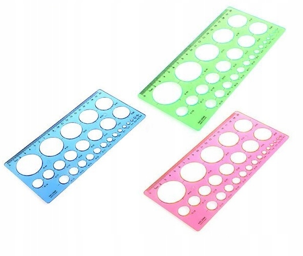 Містить 27 отворів у формі кола діаметром: 2-40 мм і лінійку 20 см.