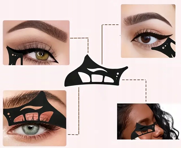 Трафарет для тіней — це інноваційний аксесуар, який полегшує створення ідеального макіяжу очей за кілька хвилин. Завдяки йому можна створити професійний ефект розтушовування без довгих тренувань і візиту до візажиста. На шаблоні позначені місця нанесення тіней різної інтенсивності, що дозволяє досягти ефекту глибини, освітленості та оптичного збільшення ока.