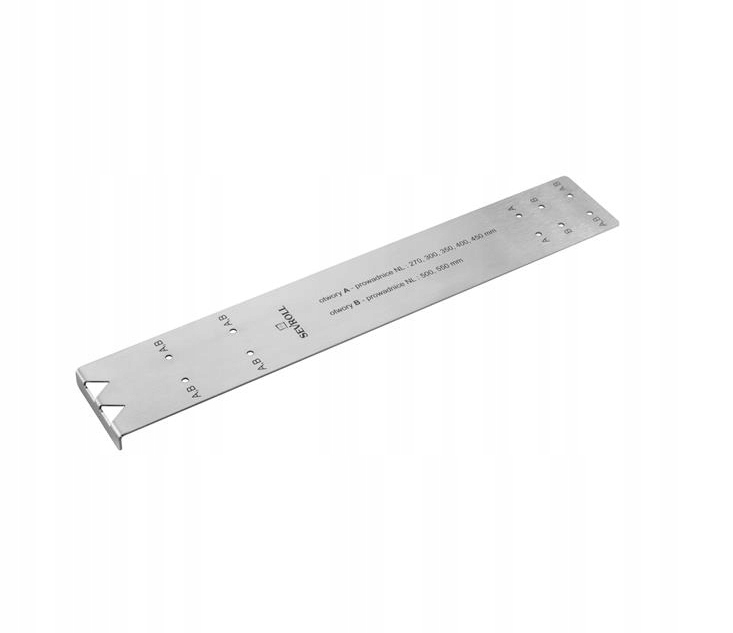 Професійний шаблон SEVROLL 06084 призначений для легкої та точної розмітки отворів під напрямні в ящиках SEVROLLBOX SLIM 3D. Завдяки цьому монтаж напрямних довжиною від 270 мм до 550 мм відбувається ефективно, швидко і без ризику помилок.