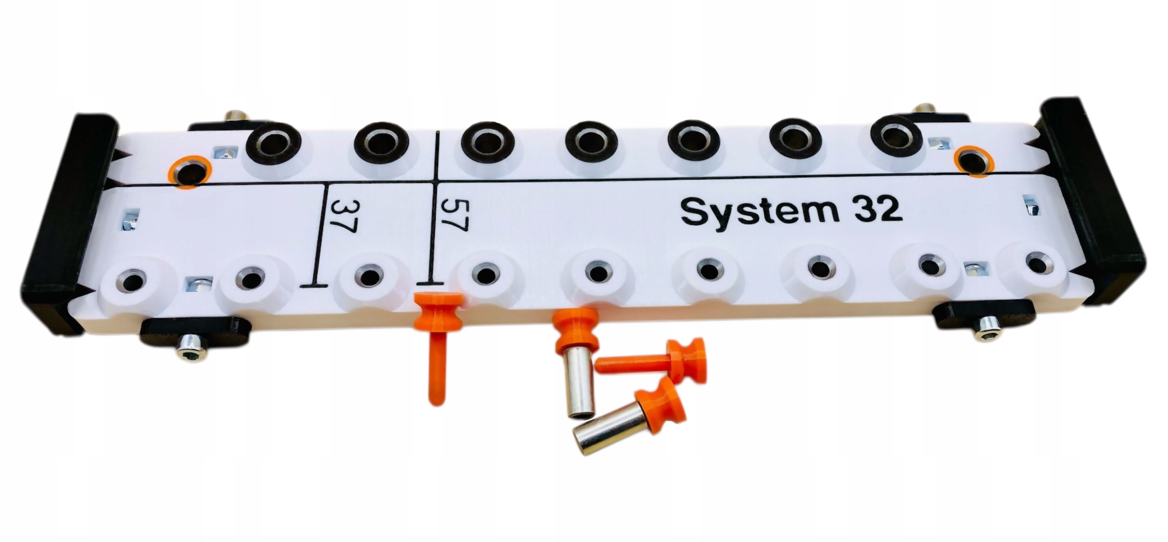 System 32 — це універсальний шаблон, який доповнює наш шаблон у формі кутової смуги (доступний на іншому аукціоні). Призначений для свердління отворів длярегульованих полиць, конфірматів, штифтів і напрямних різних виробників.