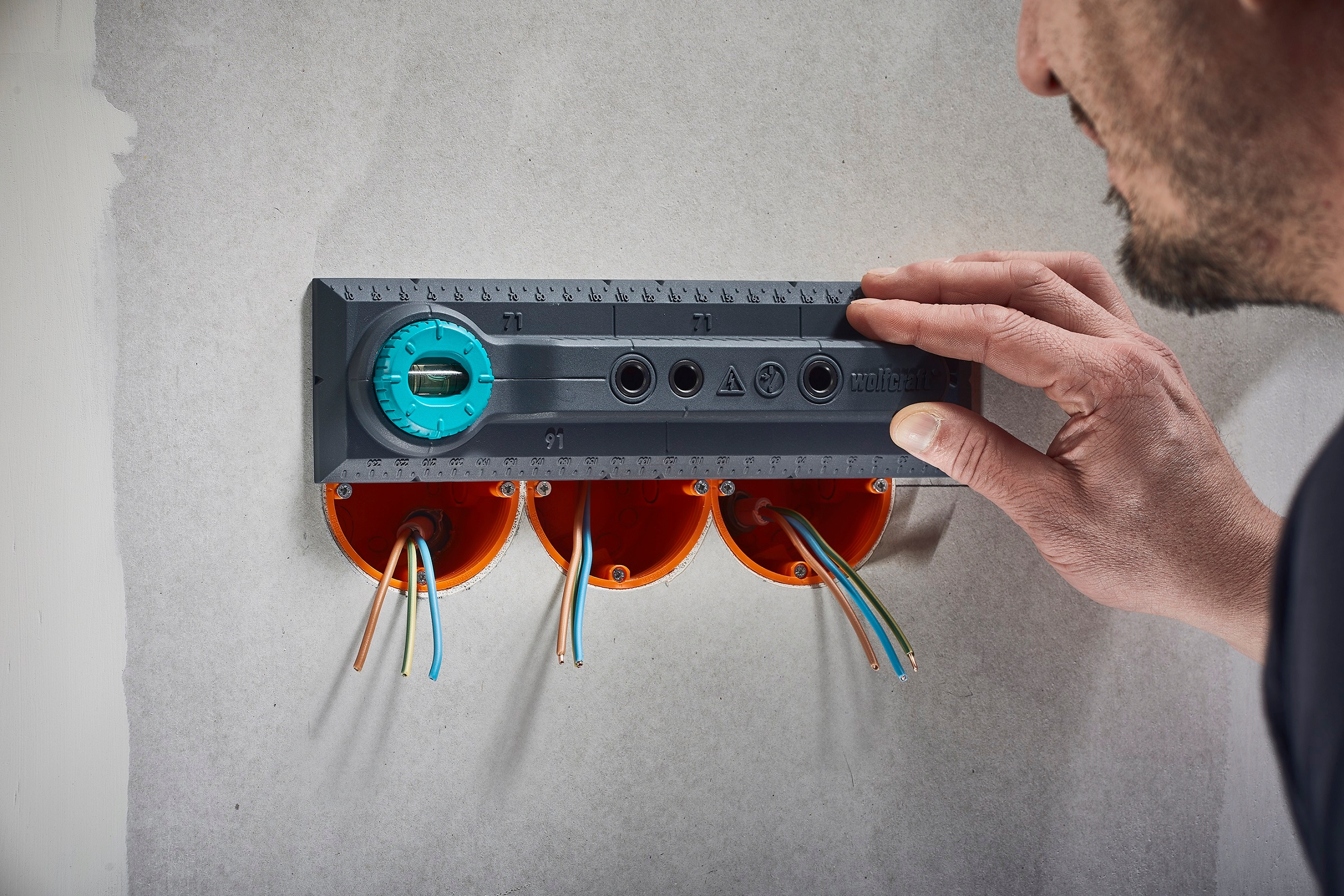 ◼️ ➡️ Інтегрована міліметрова шкала допомагає швидко та ефективно визначити правильну відстань монтажу коробки від край стіни.