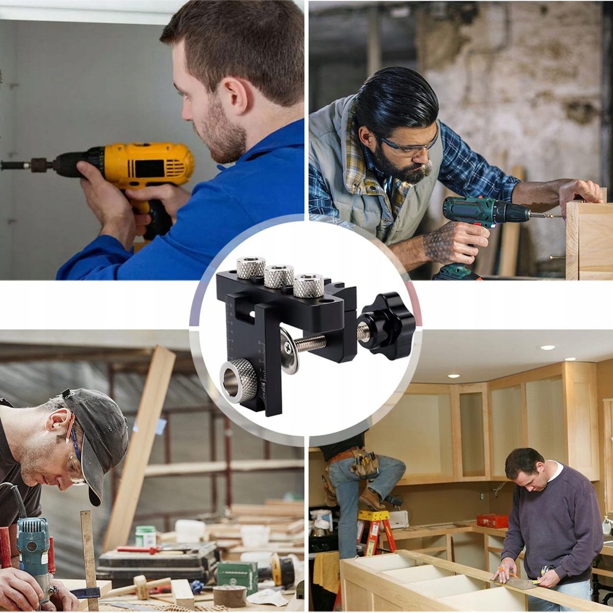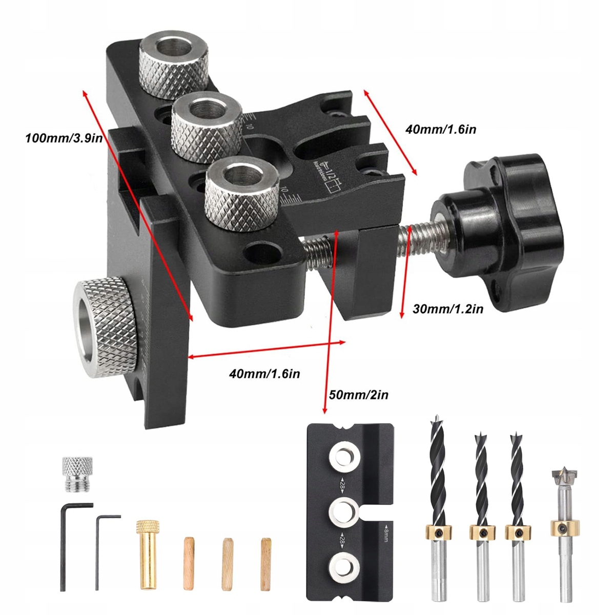 - Оснащений свердлами розміром 8 мм, 10 мм і 15 мм, цей інструмент пропонує багатофункціональні напрямні для свердління, щоб відповідати різноманітним вимогам до свердління.