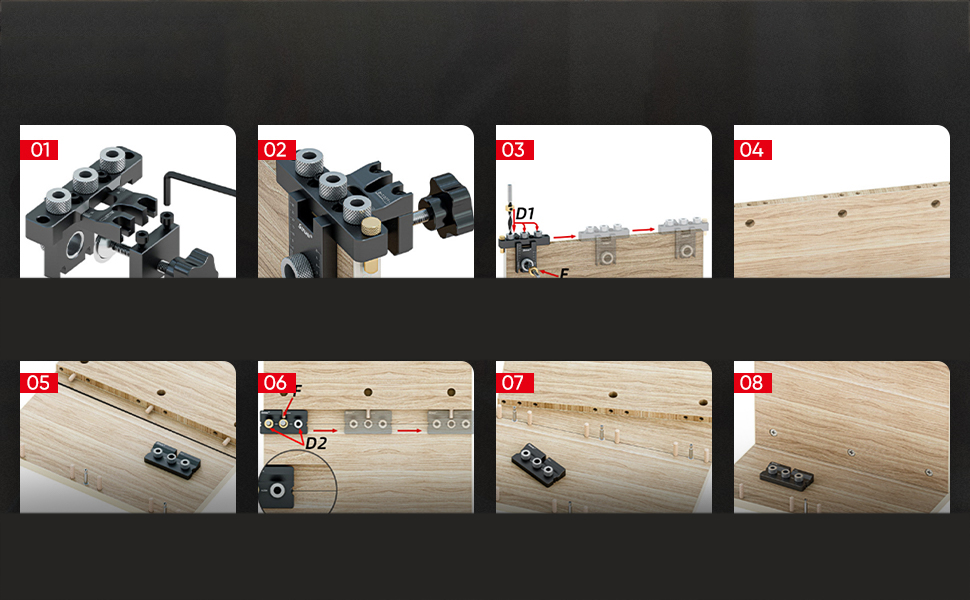- Використовуючи високоточну технологію обробки з ЧПК, цей пристрій забезпечує чітке й точне масштабування, оснащений регульованими затискачами для деревообробних інструментів і точними напрямними свердла, забезпечуючи стабільність і точність під час кожного свердління.