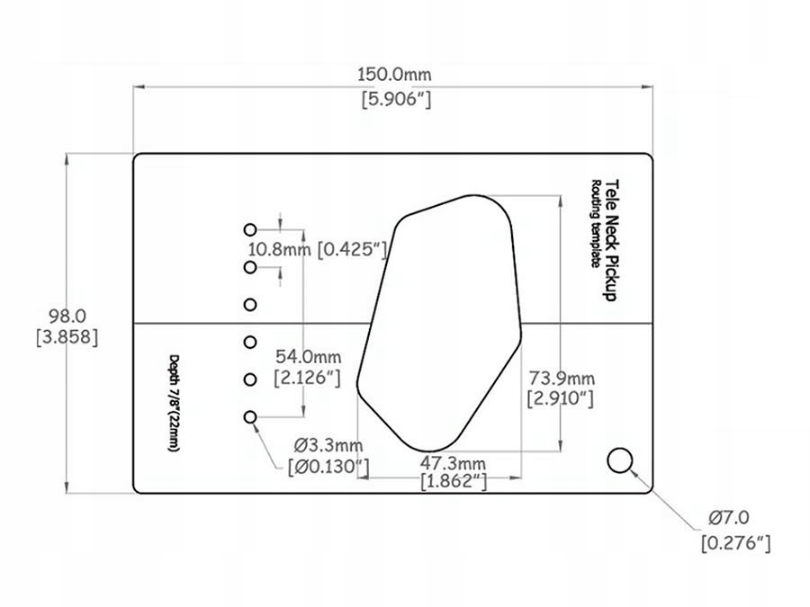 шаблон фрезеруванняПосели для фрезерного типу котушки Choper Cople в положенні грудини, виготовленого з прозорого акрилу товщиною 8 мм. Точне розміщення шаблону легко: прозорий матеріал шаблону дозволяє бачити корпус гітари під ним. Просто вирівняйте лазерні лінії шаблону за допомогою гітарної позначки, щоб щоразу отримувати правильне налаштування.