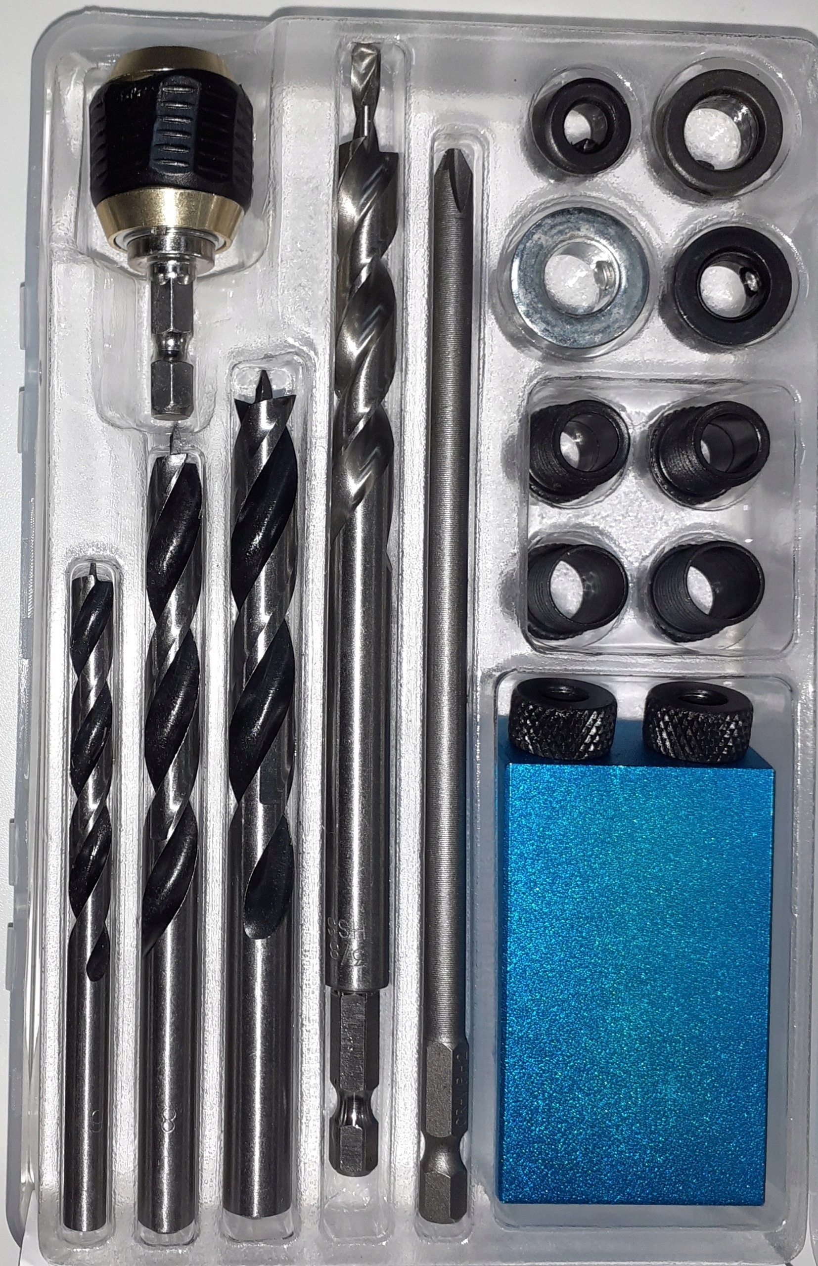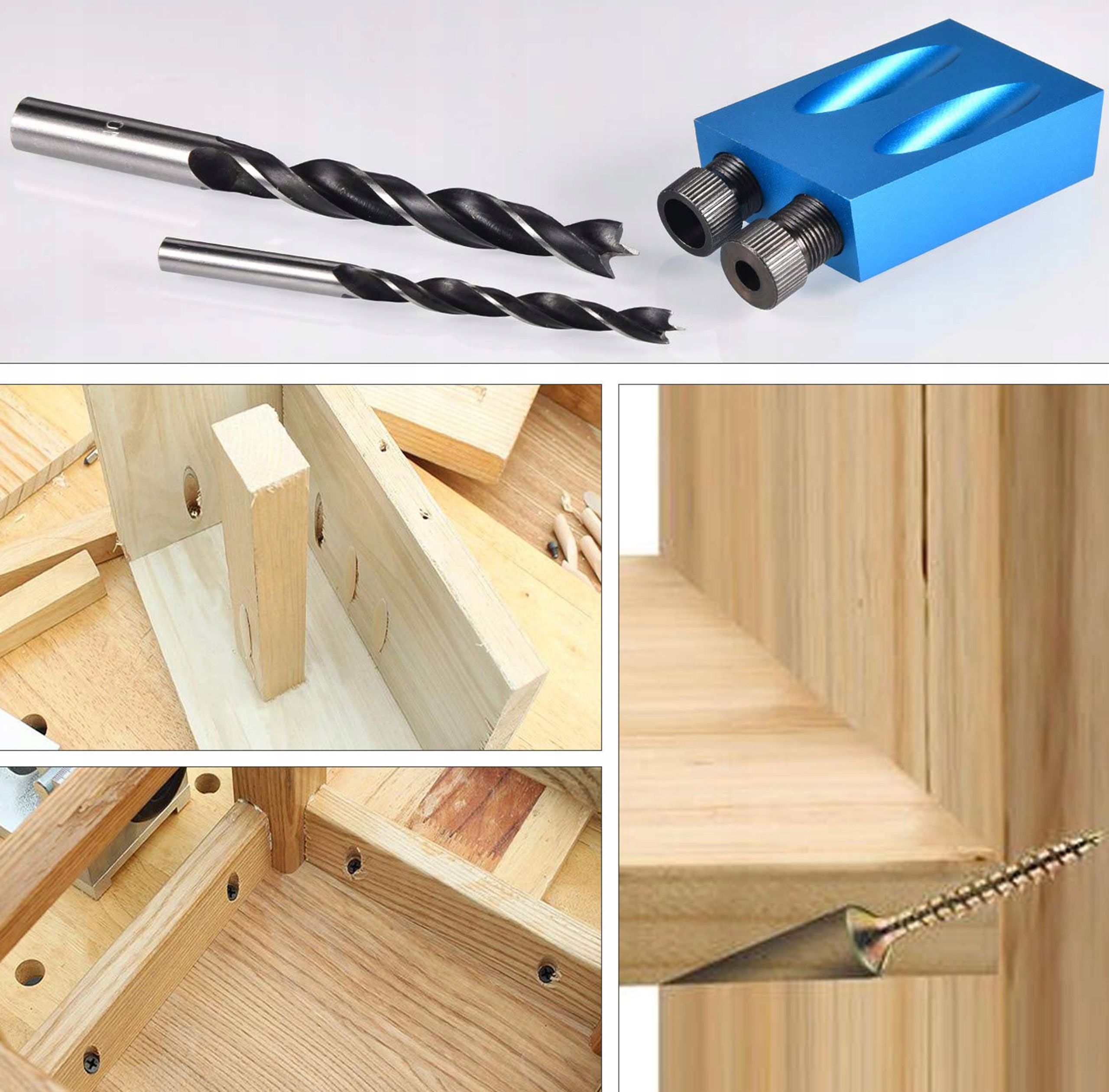 - Набір, що забезпечує точне , швидкий , а також гарантує стабільність з'єднання двох дощок. Крім того, завдяки способу свердління та розташуванню деревини вона залишається естетичною та не оголює з’єднувальні елементи.
