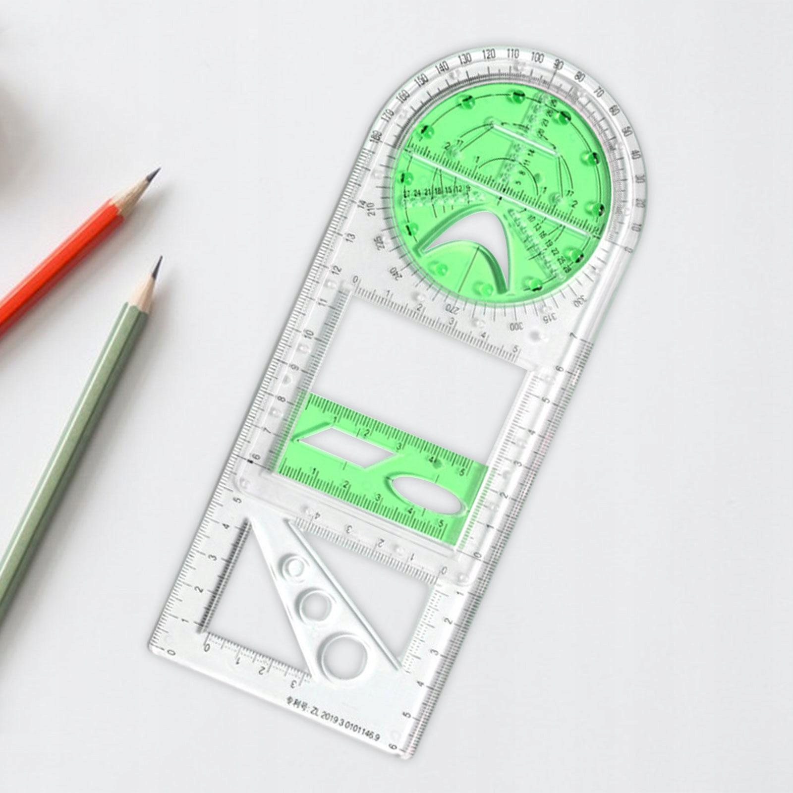 [Багатофункціональний правитель]: Багатофункціональний геометричний правитель дозволяє намалювати різні конструкції, багатофункціональні шаблі креслень та шаблони будівництва.