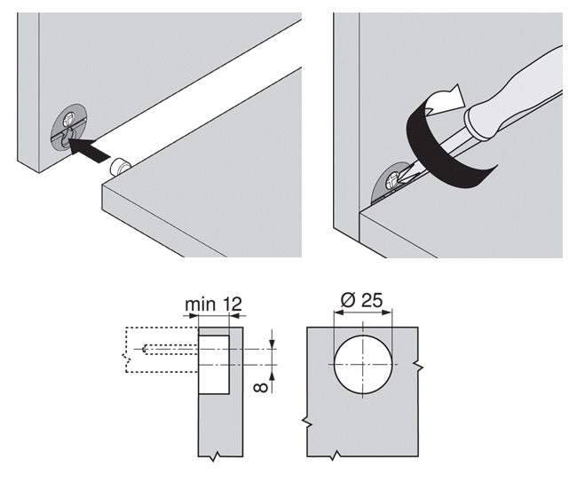 ✔ діаметр отворів, верхня пластина: Ø25 мм, 2x Ø8 мм