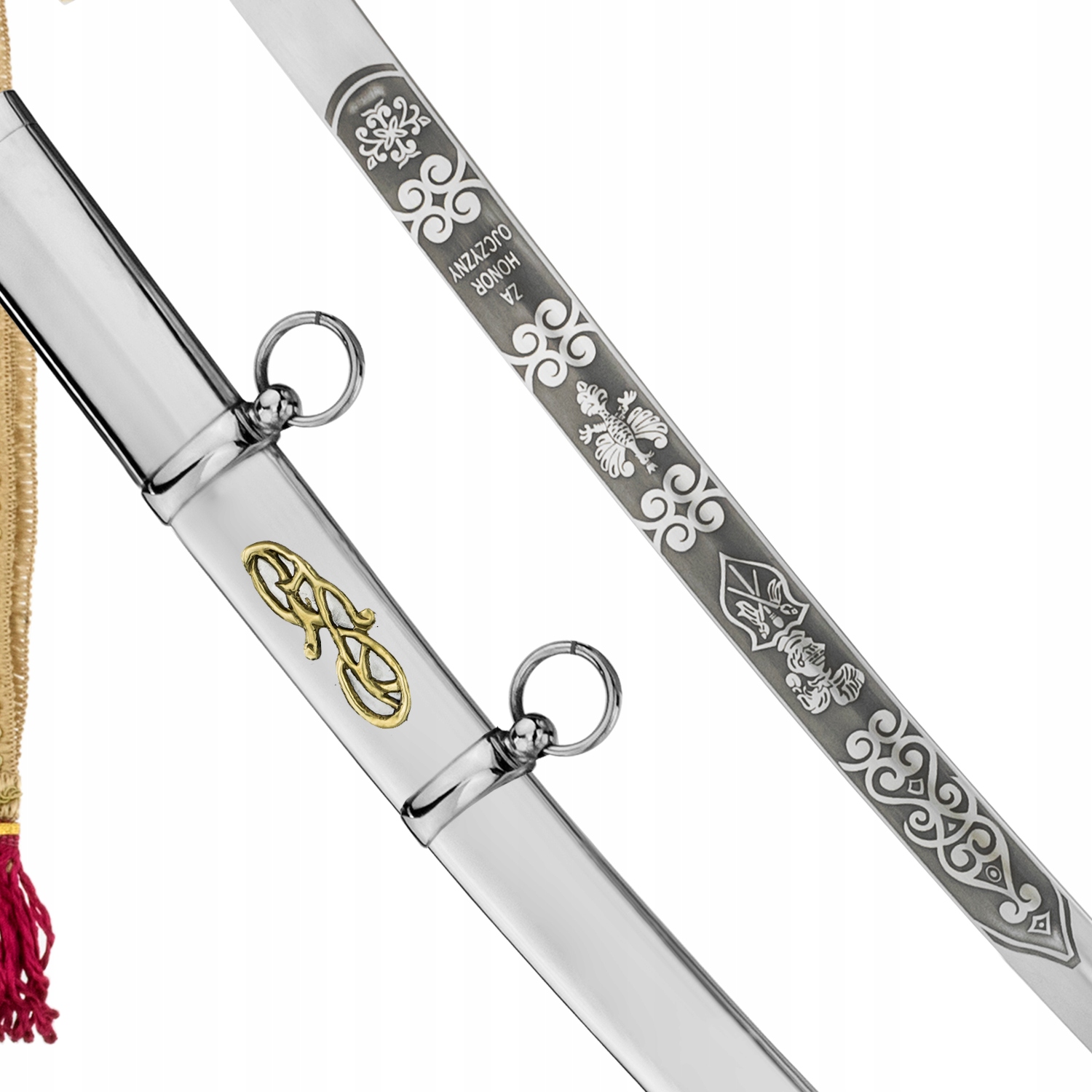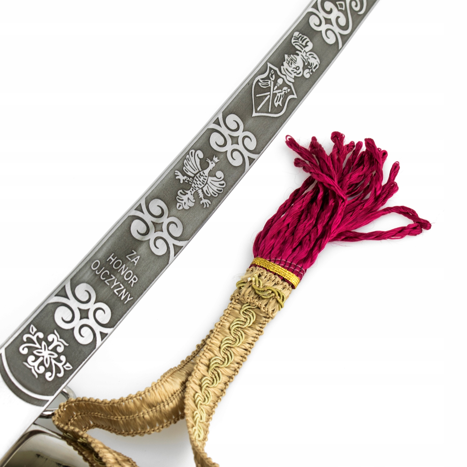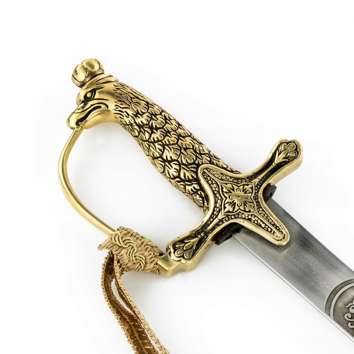 Унікальна копія зразка шаблі генерала Сікорського. 1920 рік з піхвами, кладеться настіл. Ідеальна ідея для ексклюзивного подарунка на різні випадки життя: вихід на пенсію, подяка за роки праці, номінації в армії чи поліції. Клинок виготовлений з толеданської сталі найвищої якості. Рукоятка стилізована під голову польського орла, відлита з латуні та оснащена декоративним ремнем. Основна частина прикрашена гарним орнаментом і гаслом «За честь Батьківщини», зображенням орла, шолома та герба. Шабля не заточена і для цього не призначена. Разом з індивідуальним гравіюванням стане гарною та оригінальною прикрасою будь-якого інтер'єру!