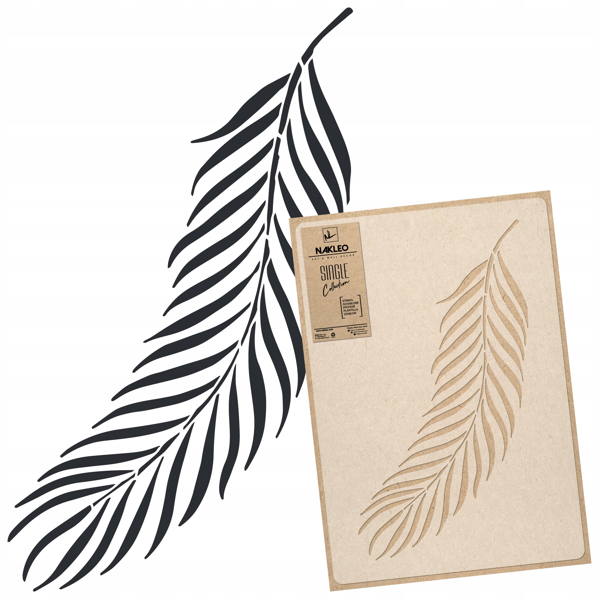 Багаторазові трафарети для малювання з колекції Nakleo Single Collection Вони виготовлені з міцного напівпрозорого пластику, що робить їх простими у використанні та догляді за ними. Ретельно продумані візерунки допоможуть надати вашому інтер'єру неповторний стиль і характер. Усі мотиви доступні в двох розмірах - на аркуші 45x65 см або 59x95 см [доступний на іншому аукціоні].