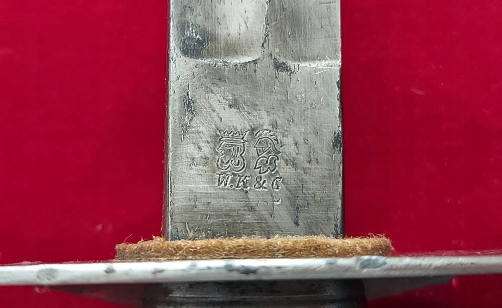 Екземпляр, який видно на фото, дуже добре зберігся. Лезо не відшліфовано та зберігає приблизно 90% оригінального хрому. Він злегка заточений. На поріжку леза нанесено маркування W.K&C (Weyersberg Kirschbaum Solingen) та голову короля та лицаря. На ручці збереглася оригінальна ящірка і плетіння. Шабля не зламана. Оригінальна шкіра збереглася під поперечиною.
