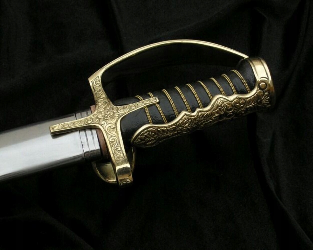 Ця шабля має злегка вигнуту ручку. Закрита гарда (нахилена під кутом 105˚ до поперечини) захищала руку і забезпечувала правильний баланс зброї. Латунний ковпак, що закриває задню частину рукоятки, посилював хват. Латунна хрестовина з вусом зміцнювала зброю в найслабшому місці - у місці з'єднання клинка з руків'ям і додатково захищала руку. Латунний палець, розташований посередині хрестовини, дозволяв краще контролювати шаблю під час атаки.