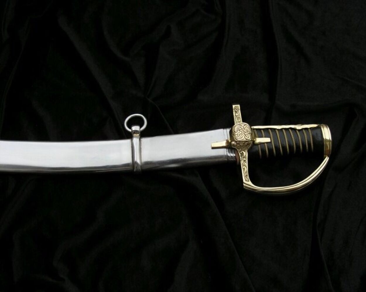 Ця шабля має злегка вигнуту ручку. Закрита гарда (нахилена під кутом 105˚ до поперечини) захищала руку і забезпечувала правильний баланс зброї. Латунний ковпак, що закриває задню частину рукоятки, посилював хват. Латунна хрестовина з вусом зміцнювала зброю в найслабшому місці - у місці з'єднання клинка з руків'ям і додатково захищала руку. Латунний палець, розташований посередині хрестовини, дозволяв краще контролювати шаблю під час атаки.
