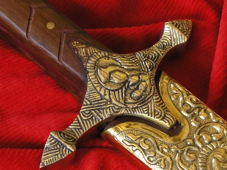 Характерна дерев'яна рукоятка у формі голови орла була посилений заклепками. Хрестовина без дужки, виготовлена з латуні та оздоблена у східному стилі з орлом посередині та зображенням Божої Матері Марії.