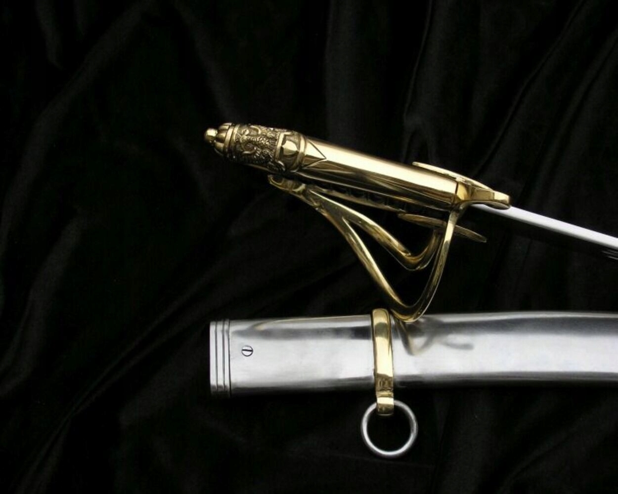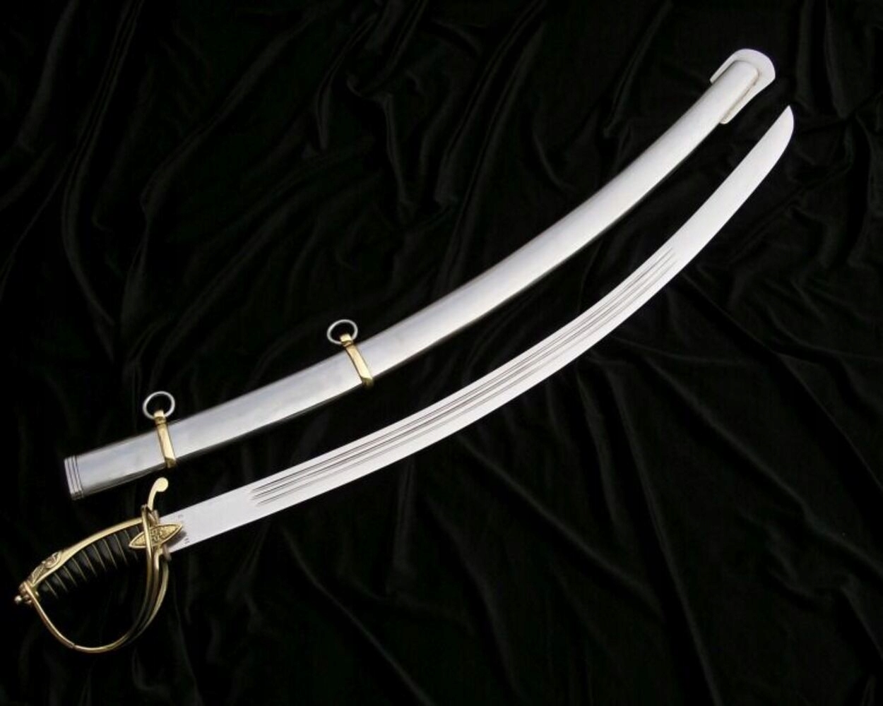 НОЖНИ: ПОЛІРОВАНА ВУГЛЕЦЕВА СТАЛЬ (потребує обслуговування). Піхви зсередини обшиті шкірою. Ви можете тримати шаблю в піхвах, не боячись корозії.