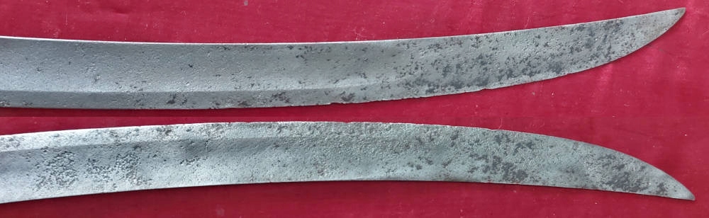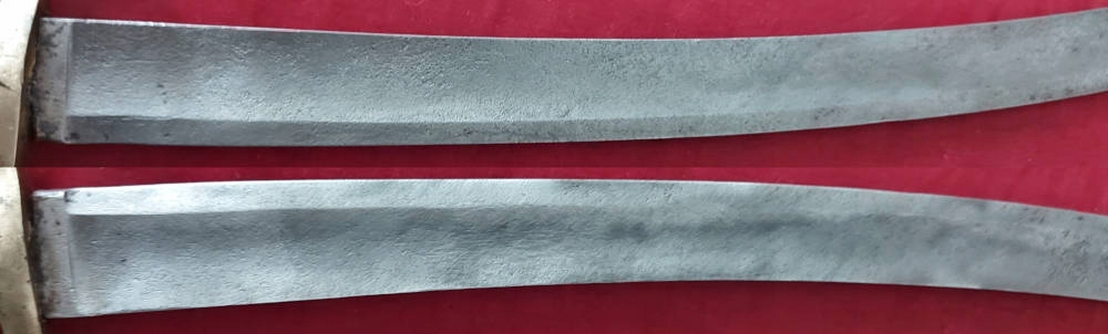 Екземпляр, який видно на фото. Лезо не відшліфовано та покрите рівним дрібним зерном. Ручка латунь. На луку є видимі позначки. Рукоятка накладна.