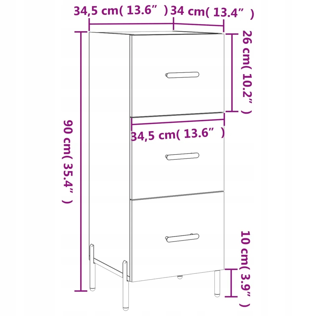 - Загальні розміри: 34,5 x 34 x 90 см (Д x W x висота)