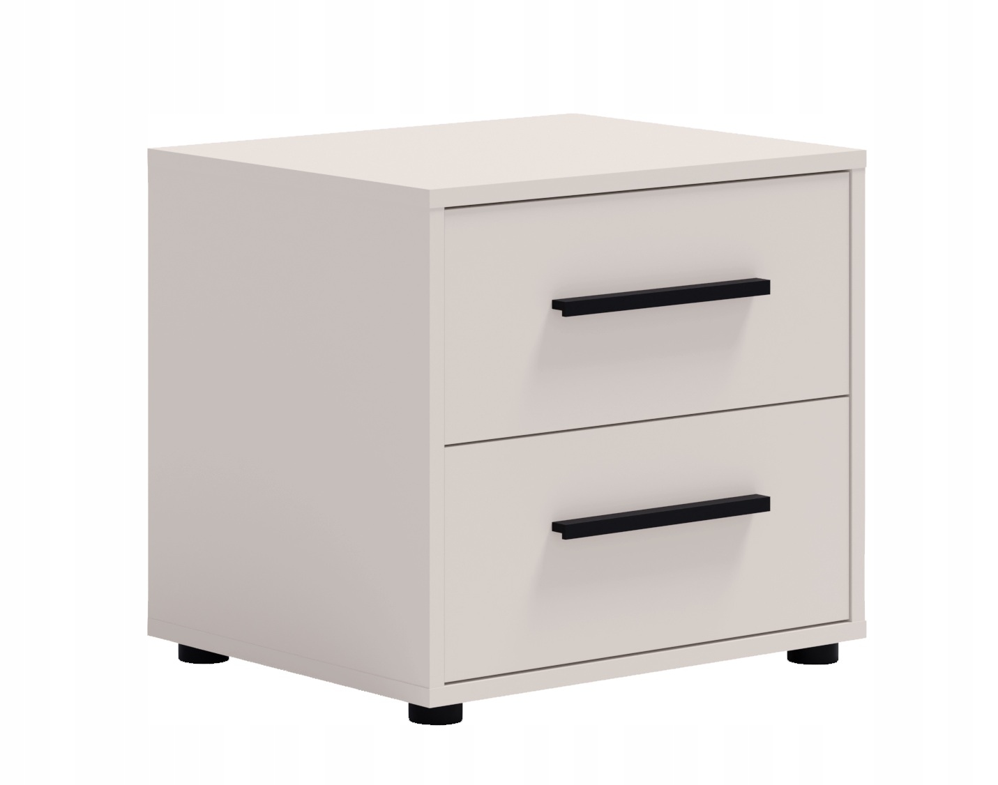 Оснащений 2 практичними висувними ящиками, він дозволяє зберігати всі необхідні речі під рукою - від книг і телефонів до дрібних аксесуарів. Чорні ручки додають характеру меблям і контрастують із білою поверхнею, надаючи всьому об’єкту елегантності.