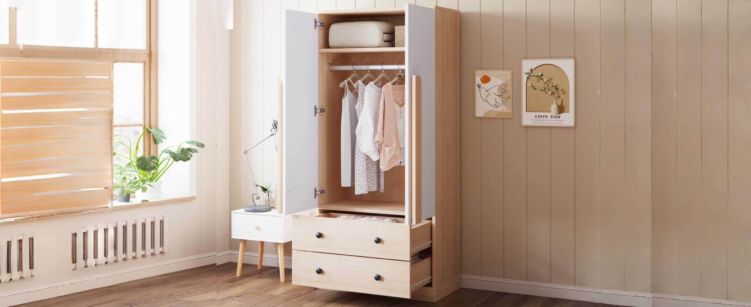 • - Дизайн подвійних дверей, великий внутрішній простір, може легко вмістити різний одяг, сумки та аксесуари, задовольняючи потреби всієї родини.