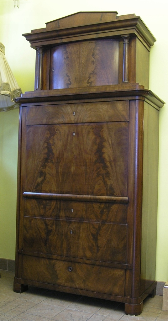Шафа бідермайер "BLENDA". Для обслуговування. Шпон - пірамідальне червоне дерево. Ширина 111 см, глибина 52,5 см; висота 214,5 см.