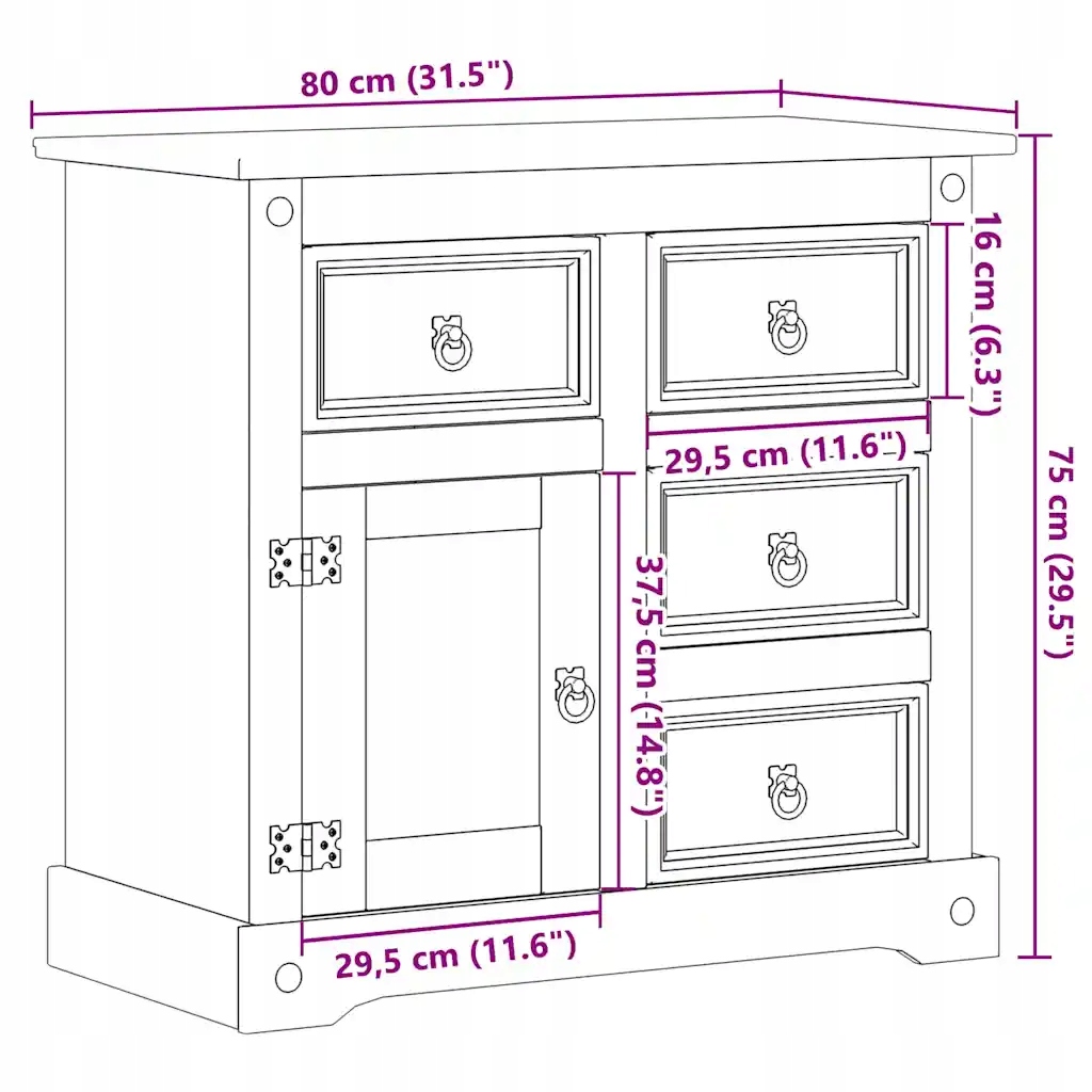 - Містке та функціональне місце для зберігання: оснащене висувними ящиками та перегородкою, ідеально підходить для організації речей у вітальні, на кухні чи в холі.