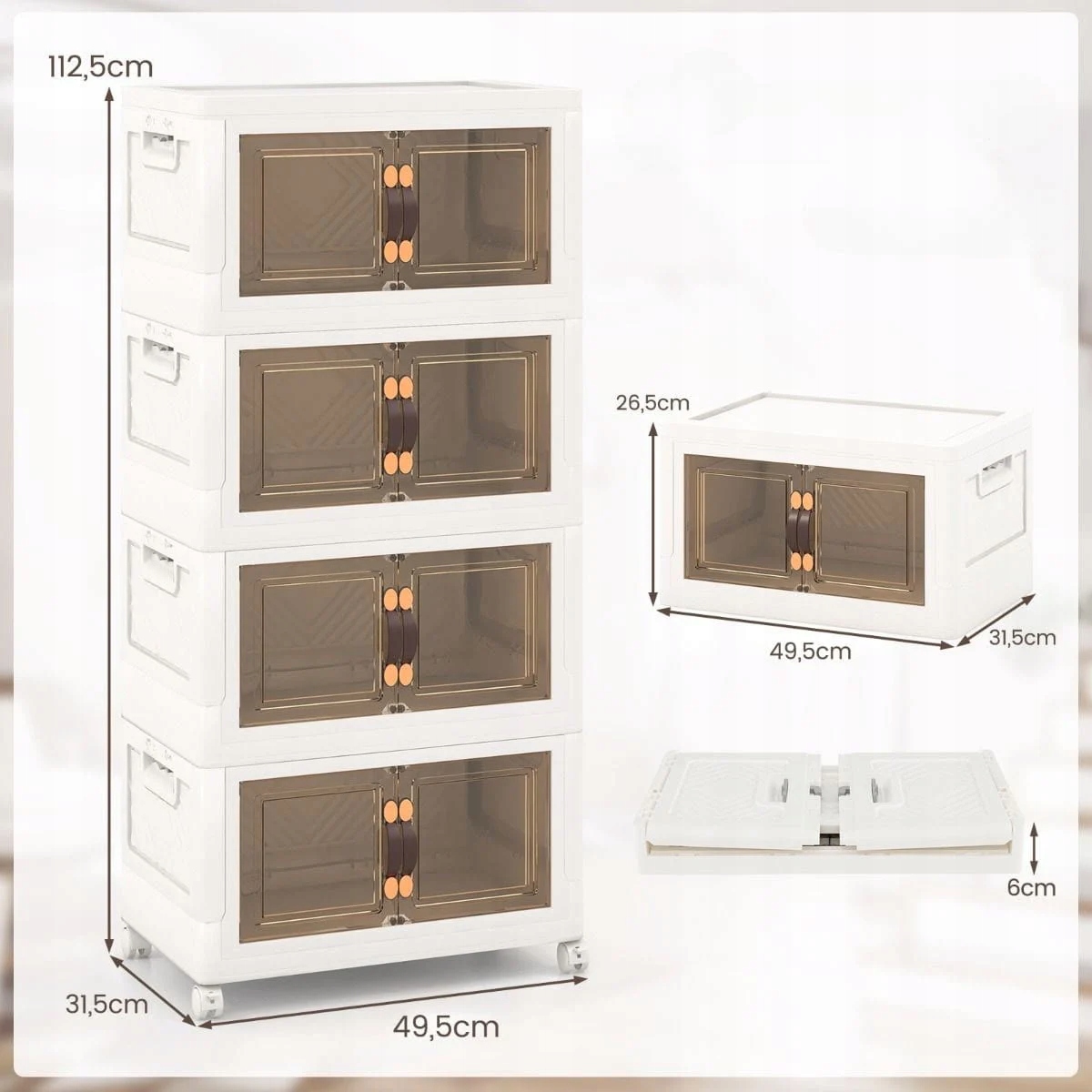 Наш органайзер на коліщатках — це практичний предмет меблів, який допоможе вам бути організованим. У ньому можна зберігати одяг, взуття, іграшки, інструменти та дитячі речі (матеріал не містить BPA). Конструкція з легкого та міцного ПП гарантує довговічність протягом багатьох років. Завдяки коліщаткам з фіксаторами ви зможете легко переміщати меблі та паркувати їх у вибраному місці. Напівпрозорі двері забезпечують легкий доступ всередину завдяки зручним ручкам. Збірка буде легкою завдяки чітким інструкціям і, перш за все, не вимагає використання інструментів.