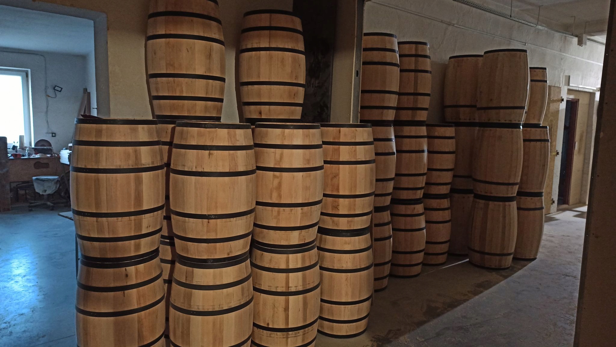 Бочка - барна стійка з полицею - це унікальний предмет меблів, який поєднує в собі неповторне оздоблення інтер'єру з практичним використанням. Кожна бочка виготовляється вручну починаючи від розрізання дощок на лісопилці і закінчуючи ручним зняттям обручів, які надають бочці унікальну опуклу форму. Бар вміщує приблизно 40 пляшок (залежно від форми та розміру).