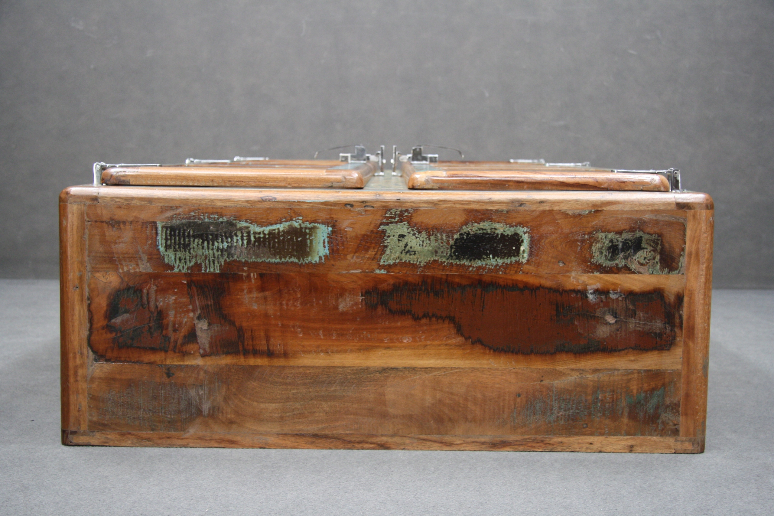 Веб-сайт новий. Виготовлений з індійської деревини, отриманої з відходів, а також зі старих мостів і кораблів, які є частиною нового стилю. Це означає, що природні ресурси землі захищені. Кожен предмет меблів унікальний завдяки ручному виготовленню, специфічним металевим ручкам і колесам, структурі дерева. Кольори та структура дерева (невеликі тріщини, дірки, нерівності, зроблені навмисно) підкреслюють індивідуальність меблів.