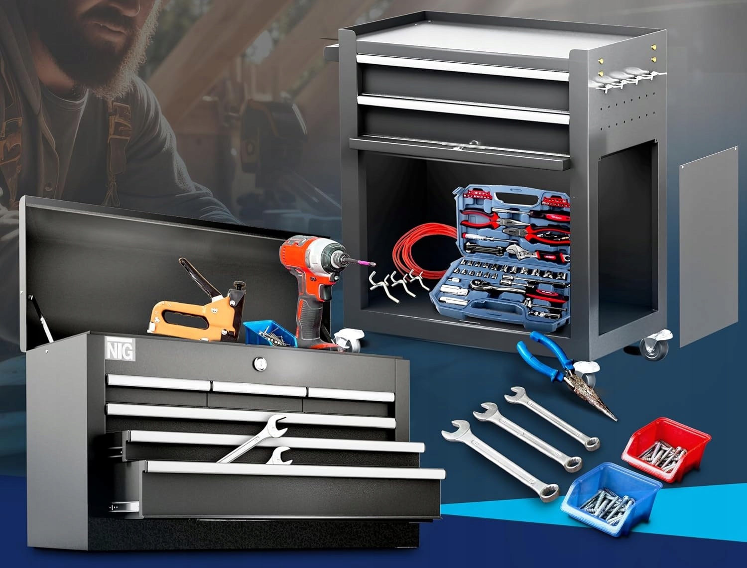 Незалежно від того, чи працюєте ви в майстерні, на будівництві чи в гаражі, візок для майстерні NTG є ідеальним рішенням для добре організованого робочого середовища. Поєднання простору для зберігання, мобільності та міцної конструкції робить його незамінним помічником для всіх, хто надає значення порядку та ефективності.