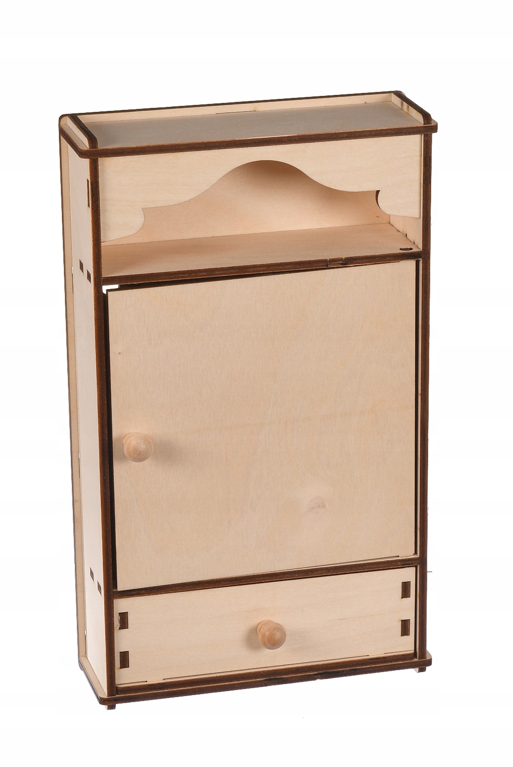 Шафа також має невелику, але містку шухляду, яка дозволяє зберігати важливі для нас дрібниці. Виготовлений з дерева. Підходить для всіх типів приміщень. Незамінний в холах і коридорах. Шафа може бути декорована і оброблена будь-яким способом, наприклад, пофарбована в улюблений колір, методом декупажу або покрита лаком. Ідеальний практичний подарунок на новосілля та для коханої людини. Виготовлений з 5 мм фанери.