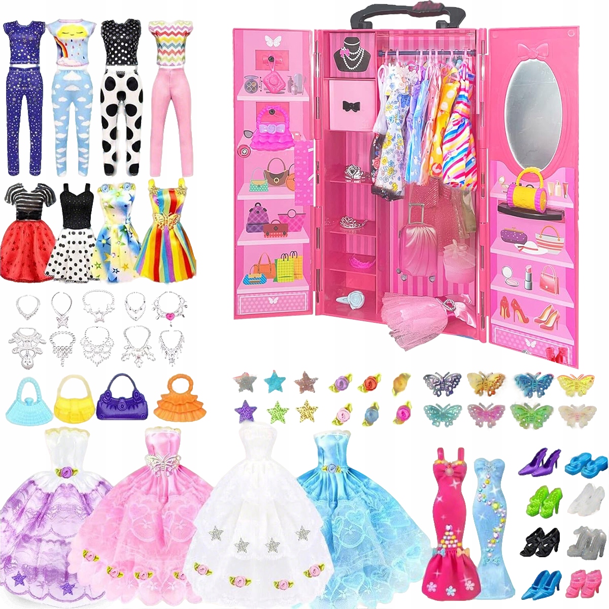 Ляльковий гардероб, одяг, прикраси, аксесуари для ляльок 11,5 дюймів, гардероб для ляльок, ляльковий гардероб з весільною сукнею, сукні, блузки, штани, туфлі, сумки, подарунок для дівчаток