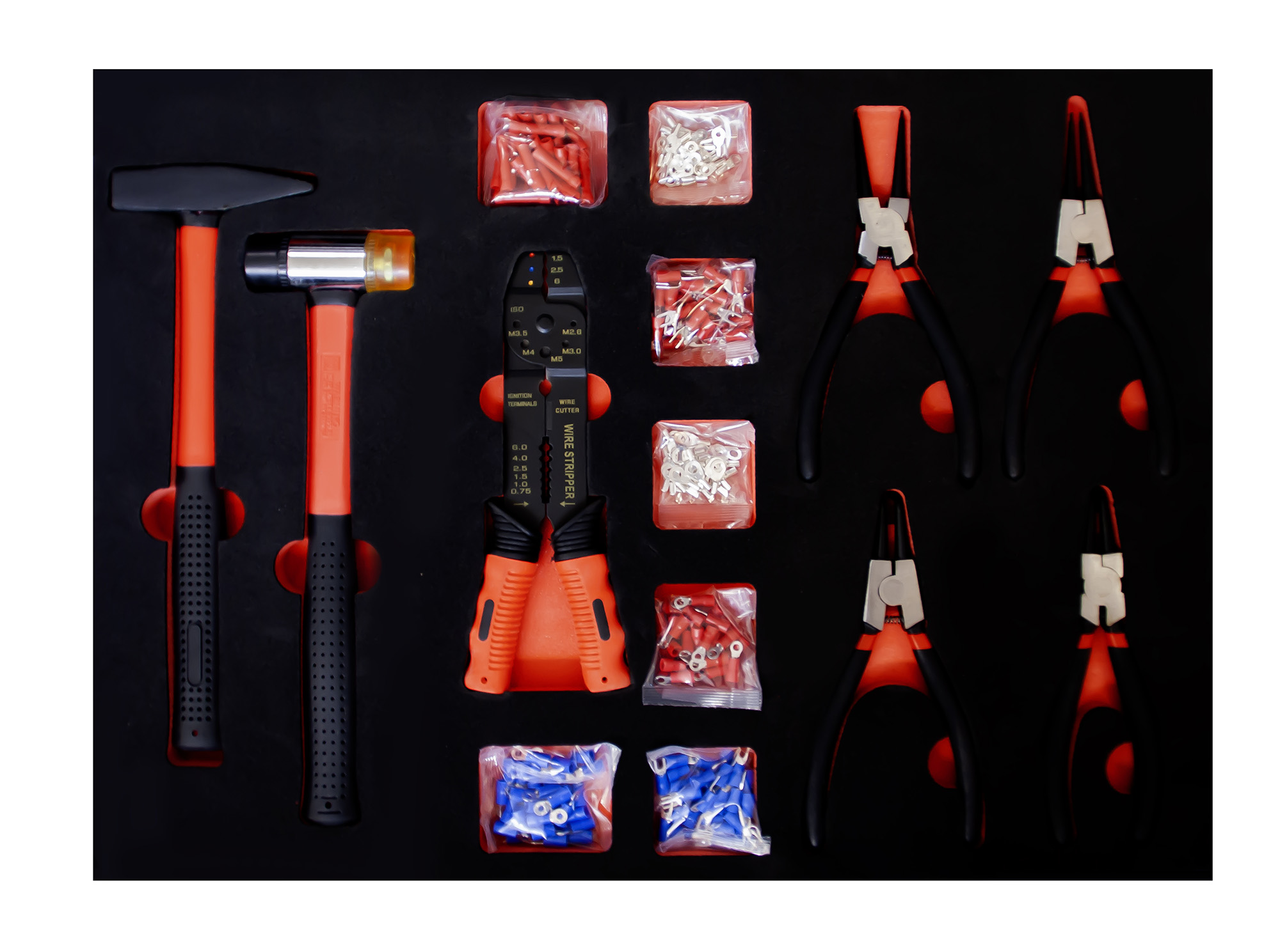 - щипці для опресування ізольованих кабельних наконечників з комплектом клем