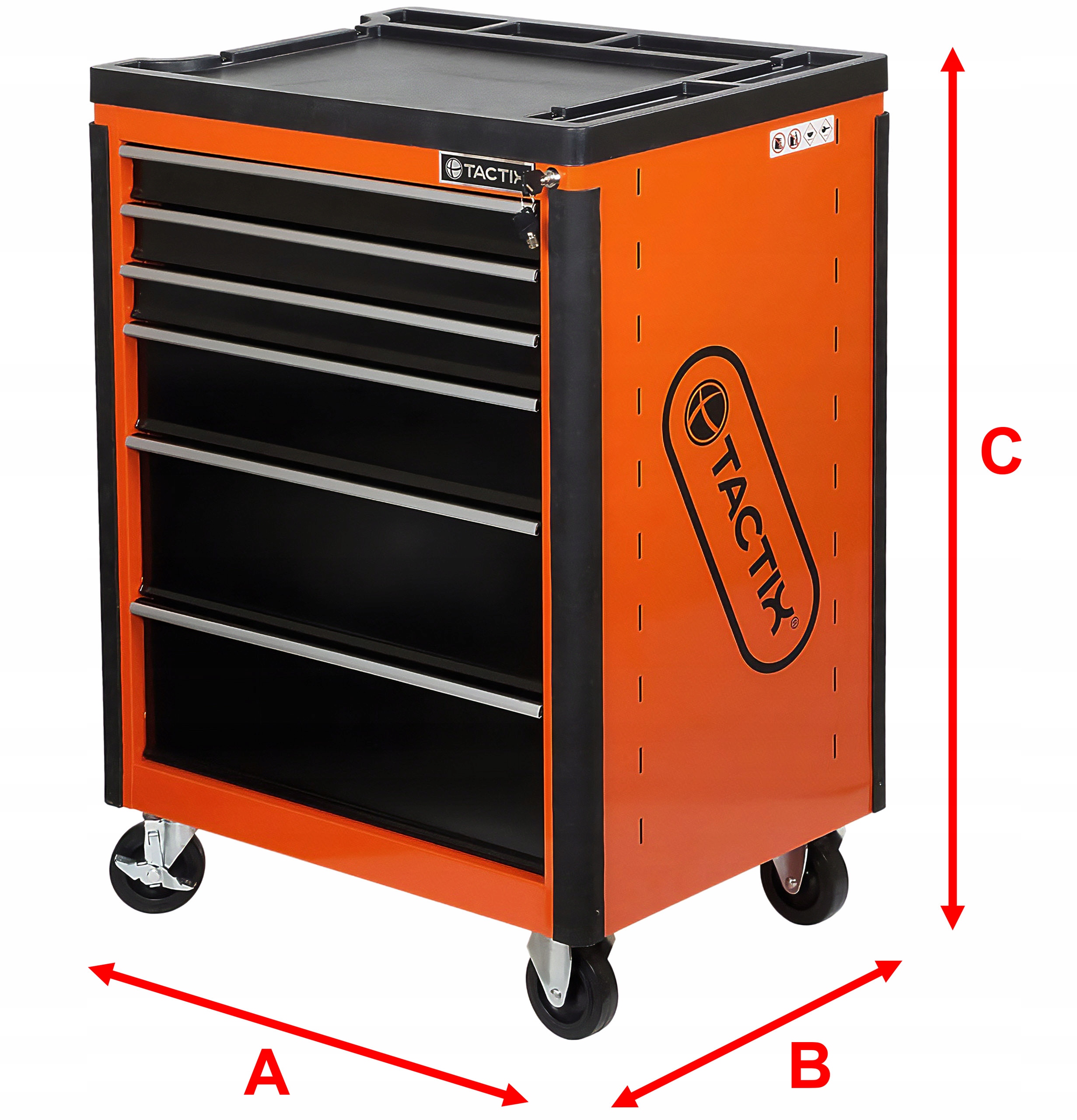 Шафа для інструментів Tactix оснащена 6 висувними ящиками на кулькових підшипниках, які дозволяють зберігати та впорядковувати ваші інструменти найбільш ефективним способом.