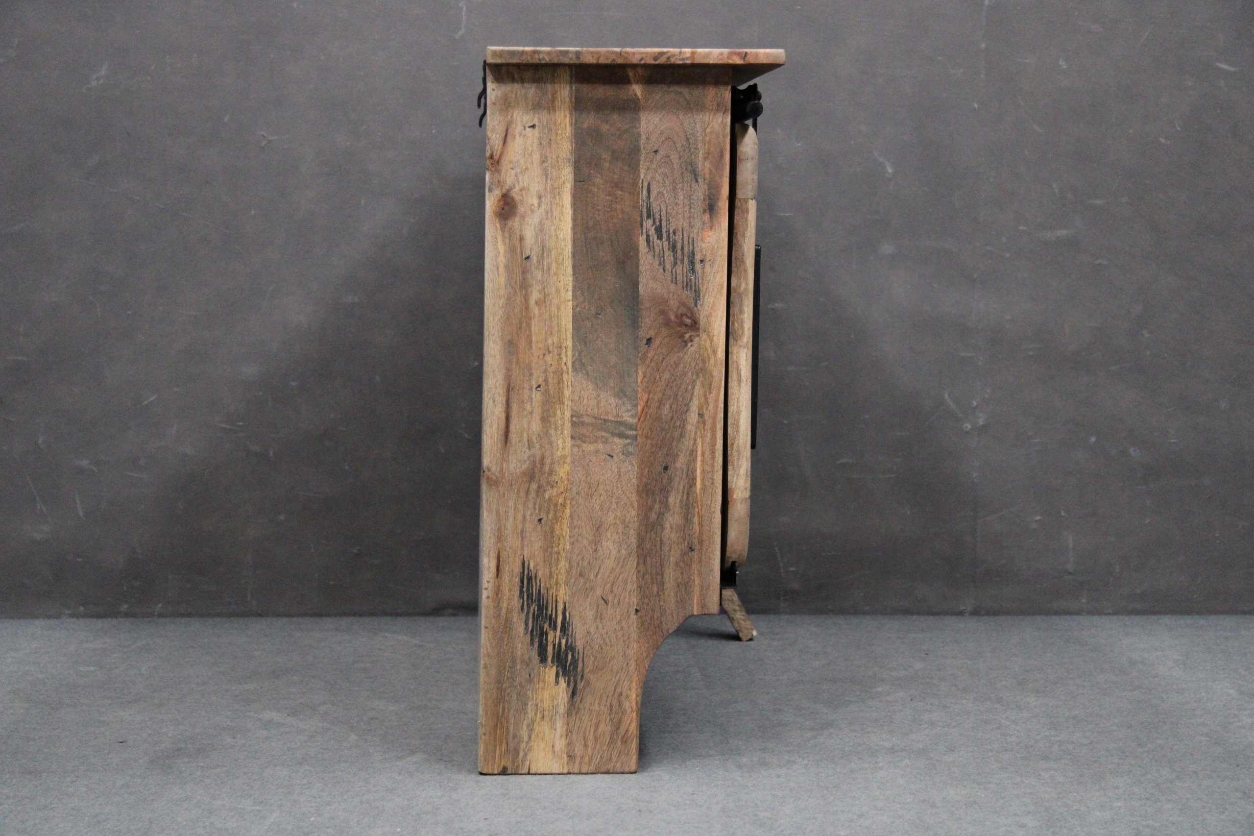 Шафа нова. Зроблено з індійського дерева манго. Кожен предмет меблів унікальний завдяки ручному виробництву та видам дерева. Він відрізняється кольорами та структурою дерева (невеликі тріщини, дірки, делікатні порожнини, які зроблені навмисно), це підкреслює індивідуальність меблів. Двері, зроблені в промисловому стилі на валиках з металевим покриттям на фронтах. >