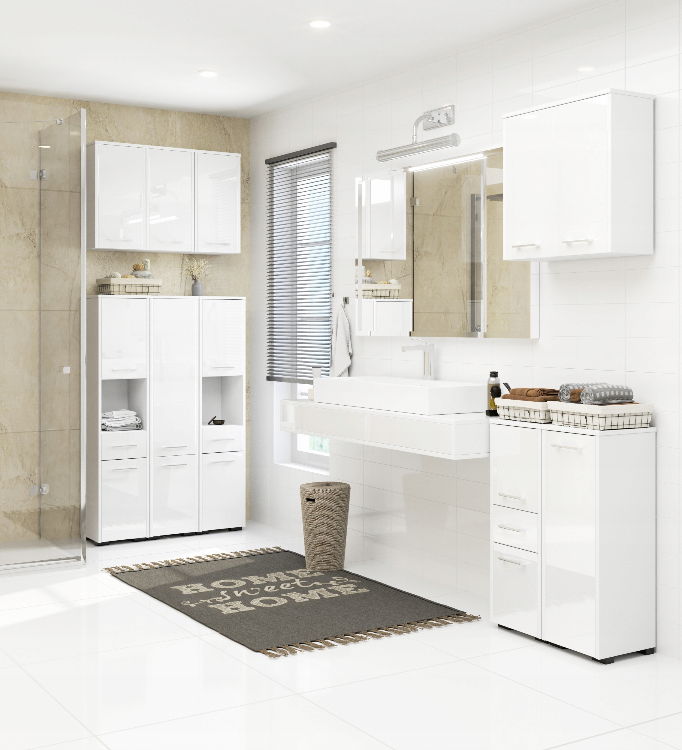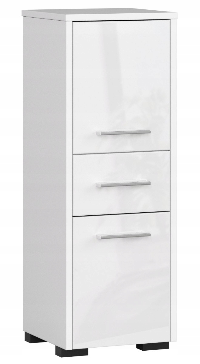 Ванна кімната - це місце, де дуже важливо підтримувати порядок. Ця проблема легко вирішується функціональними меблями, такими як полки ванної кімнати. Шафа для стелажів у ванній кімнаті Fin 2DS, представлена в нашій пропозиції, виготовлена з ламінованої тарілки, Кроноспана, товщиною 16 мм. Краї завершені ABS Edge. Все це робить шафу стійкою до подряпин та механічного пошкодження. Пост - це дуже універсальна меблі. Набір включає обидва підвісні підвіски для підвішування, і ноги, щоб покласти шафу на землю. Нижня частина стійки - це рівномірний закритий простір, в якому можна успішно зберігати рушники. Однак всередині верхніх дверей є одна полиця, яка дозволяє відокремити косметику. Центральна частина посади займає висувний ящик. Двері шафи прикрашають срібні ручки.