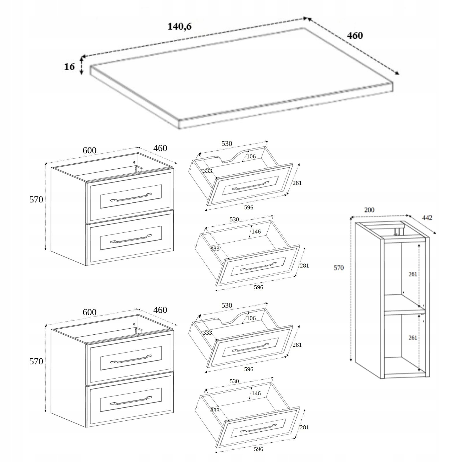 - ✅ шафа під умивальником 60 см (ящики)