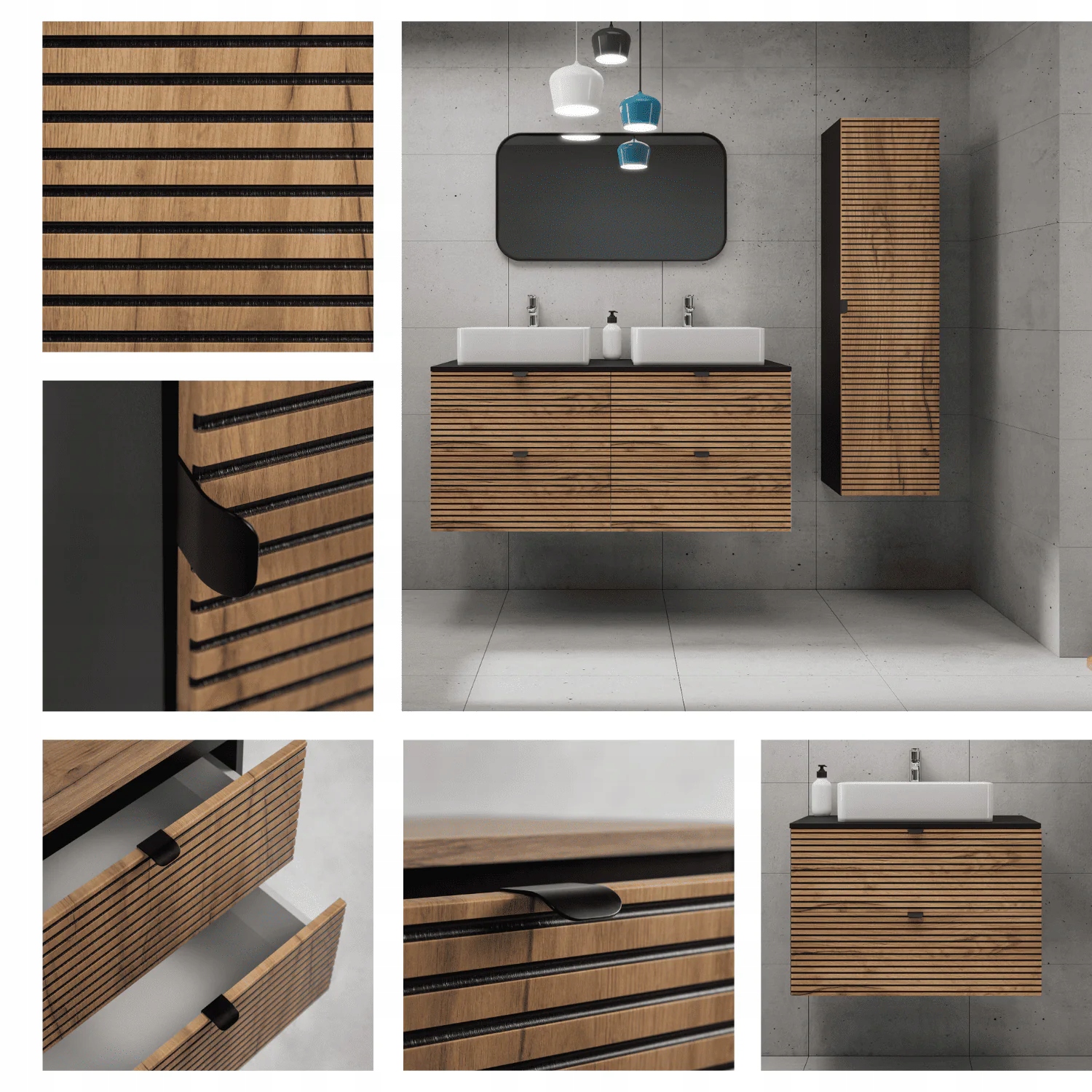 Шафа для ванної з стійкою на 140 см, що висить під раковиною, чорний дуб горища