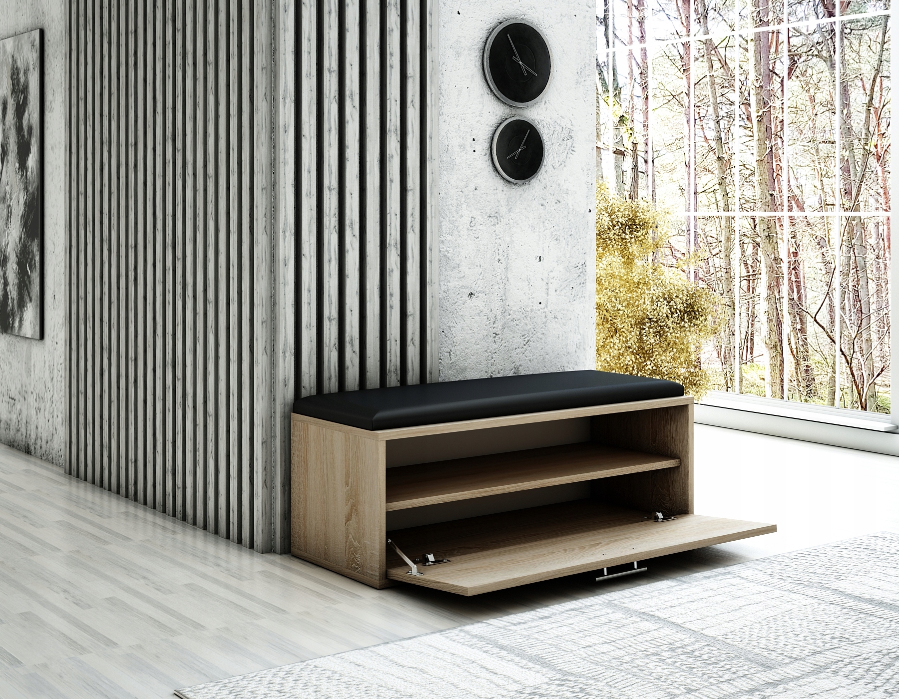 - Сидіння - обтягнуте екошкірою, виготовленою за сучасними технологіями, або м'якою тканиною зі стійкістю до відшарування: A++. Сидіння зручне та м’яке, наповнене пінопластом для оббивки – вам сподобається одягати взуття на нову шафу.