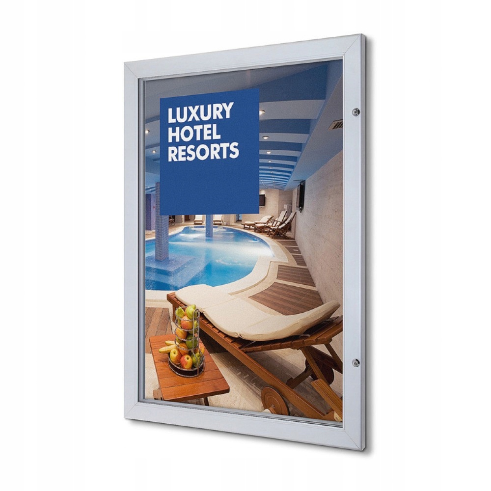 Інформаційний щит, що закривається, призначений для розміщення плаката 70х100 см. Вітрина виготовлена з високоякісного анодованого алюмінію, фасад дверцят виготовлений з міцного полікарбонату. Завдяки використанню гумових ущільнювачів плакат захищений від вологи.